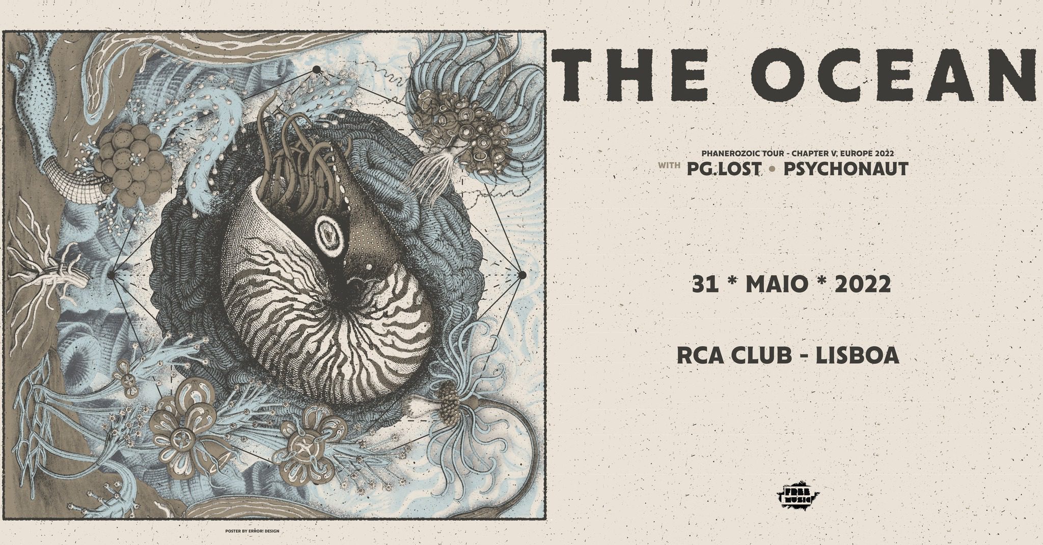 Fim da história, certo? Errado. Como foi noticiado nestas páginas, Loïc Rossetti, o vocalista dos THE OCEAN partiu ambas as pernas, o que nos levou a temer novamente por um novo adiamento, mas tudo indica que não. A banda chegou a actuar com as pistas pré-gravadas de Rossetti e a contar com Gabriel “Gabbo” Dubko (dos IMPLORE) em alguns temas durante uma digressão nos Estados Unidos, Depois, em Abril, também optou por fazer alguns concertos instrumentais. No entanto, podemos avançar que Rossetti virá com a banda a Lisboa, pelo que está tudo aberto para o que possamos apreciar no RCA Club, com a certeza apenas de que se tratará de um concerto imperdível — onde o destaque será o último trabalho de originais, «Phanerozoic II: Mesozoic | Cenozoic» — e que tanto os PG.LOST como os PSYCHONAUT estarão a acompanhá-los. Os suecos PG.LOST têm às costas «Oscillate» lançado pela Pelagic Records de Robin Stapps (estratega mor dos THE OCEAN) em 2020 e os PSYCHONAUT têm como último lançamento o EP «Ferocious Fellowman (2022 Remix & Remaster)», também editado pela editora alemã. Os bilhetes para uma noite há muito aguardada estão à venda aqui.