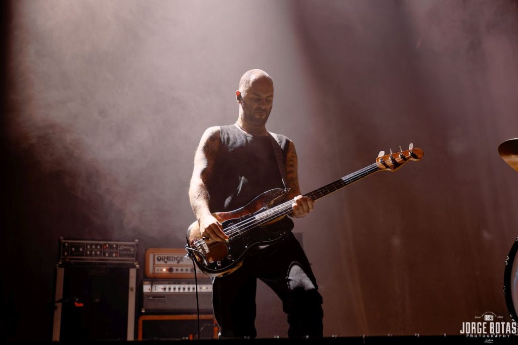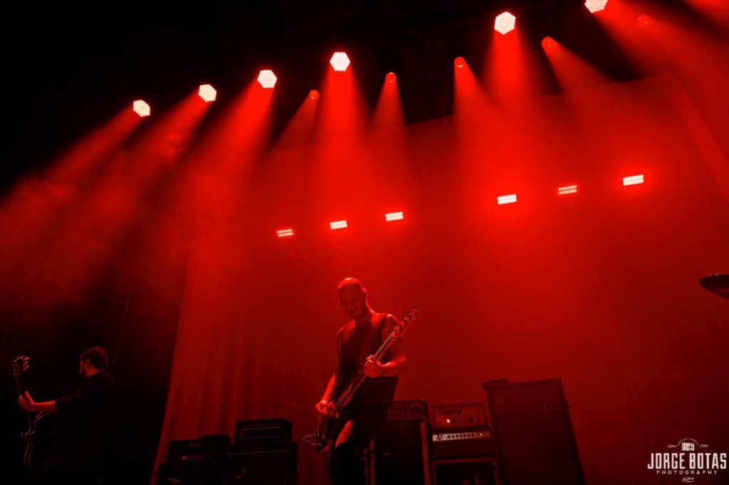 Os ocasionais crowd surfers atravessavam o público, levados em direcção ao palco pela maré humana em ebulição. Lá em cima, a banda, coesa e tecnicamente irrepreensível, demonstrava a sua mestria em temas como «deep fake» e «Impermanence», na qual os riffs intricados e ritmos dinâmicos se entrelaçaram na perfeição. «Meteor» foi um dos momentos altos, com o público em perfeita sincronia, a saltar ao ritmo do refrão explosivo. Já a meio do concerto, «Red Hypergiant» e «Everything Ends», estrategicamente colocadas no alinhamento, trouxeram uma ligeira mudança de ritmo, permitindo que o público recuperasse momentaneamente o fôlego antes de ser lançado de novo numa espiral de peso com «Black Lungs», «Royal Beggars» e «Curse».