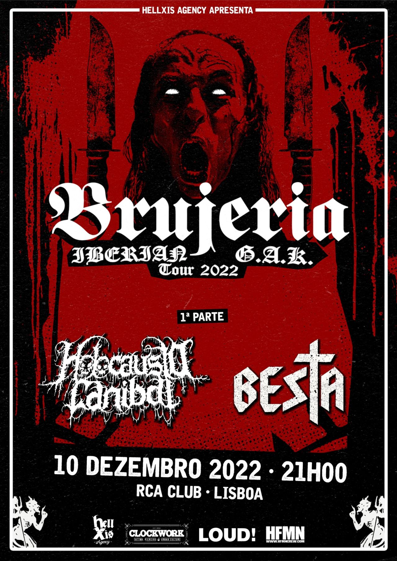Os carismáticos BRUJERIA anunciaram uma digressão ibérica que os vai trazer de volta a Portugal para um concerto único, anunciado para o dia 10 de Dezembro, no RCA Club, em Lisboa. A acompanhar a banda liderada por Juan Brujo, sobem também ao palco os nacionais BESTA e HOLOCAUSTO CANIBAL, que vão assegurar a primeira parte do espectáculo em solo luso. Quase três décadas após a edição do incontornável álbum de estreia «Matando Güeros», que chocou a cena da música extrema com as suas histórias de satanismo e narcotráfico, Brujo e companhia continuam a ser um dos nomes a ter sempre em conta num espectro em que tudo já parece ter sido inventado. Recorde-se que, em Junho de 2020, o super projecto internacional disponibilizou um novo single digital, intitulado «COVID-666», através da Nuclear Blast Records, que inclui um tema original e, no lado B uma versão inusitada de «Cocaine», um original de J.J. Cale popularizado por Eric Clapton. “O coronavírus é a praga do Diabo enviada para limpar a humanidade“, dizia a banda em comunicado à imprensa. Vai deixar os sobreviventes a sofrer sem emprego, sem dinheiro e forçar um estilo de vida através das redes sociais em todo o mundo! Vendo as coisas pelo lado positivo… Agora já posso ir às compras sem pregar um suto de morte às pessoas!. O single foi produzido e misturado por Brujo, que concebeu também a arte da capa, e já pode ser ouvido em plataformas de streaming digital como o Spotify«Pocho Aztlan», o mais recente disco dos BRUJERIA, foi editado em 2016 e marcou o primeiro registo de longa-duração do grupo desde a edição de «Brujerizmo», em 2000.