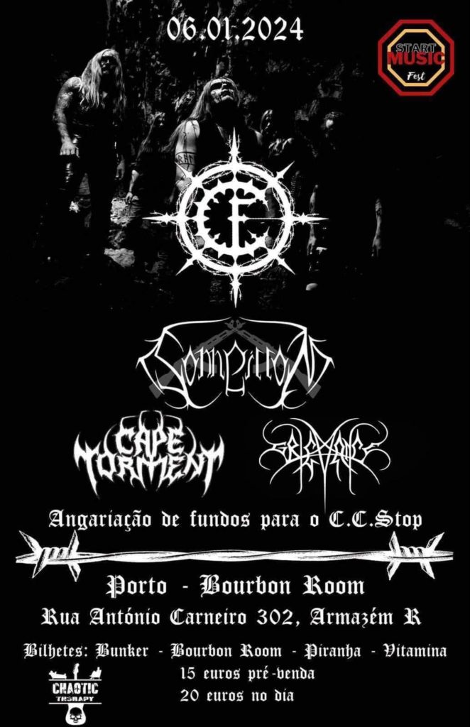 Os noruegueses CARPATHIAN FOREST regressam a Portugal em 2024 para encabeçar a edição inaugural do START MUSIC FEST. Depois de duas actuações explosivas no SWR – Barroselas Metalfest, em 2006 e 2018, a banda liderada pelo irascível Nattefrost vai regressar ao nosso país para uma actuação agendada para o dia 6 de Janeiro de 2024, no Bourbon Room, no Porto. O cartaz do evento fica completo com a participação dos nacionais SONNEILON, CAPE TORMENT e GRIEVANCE.