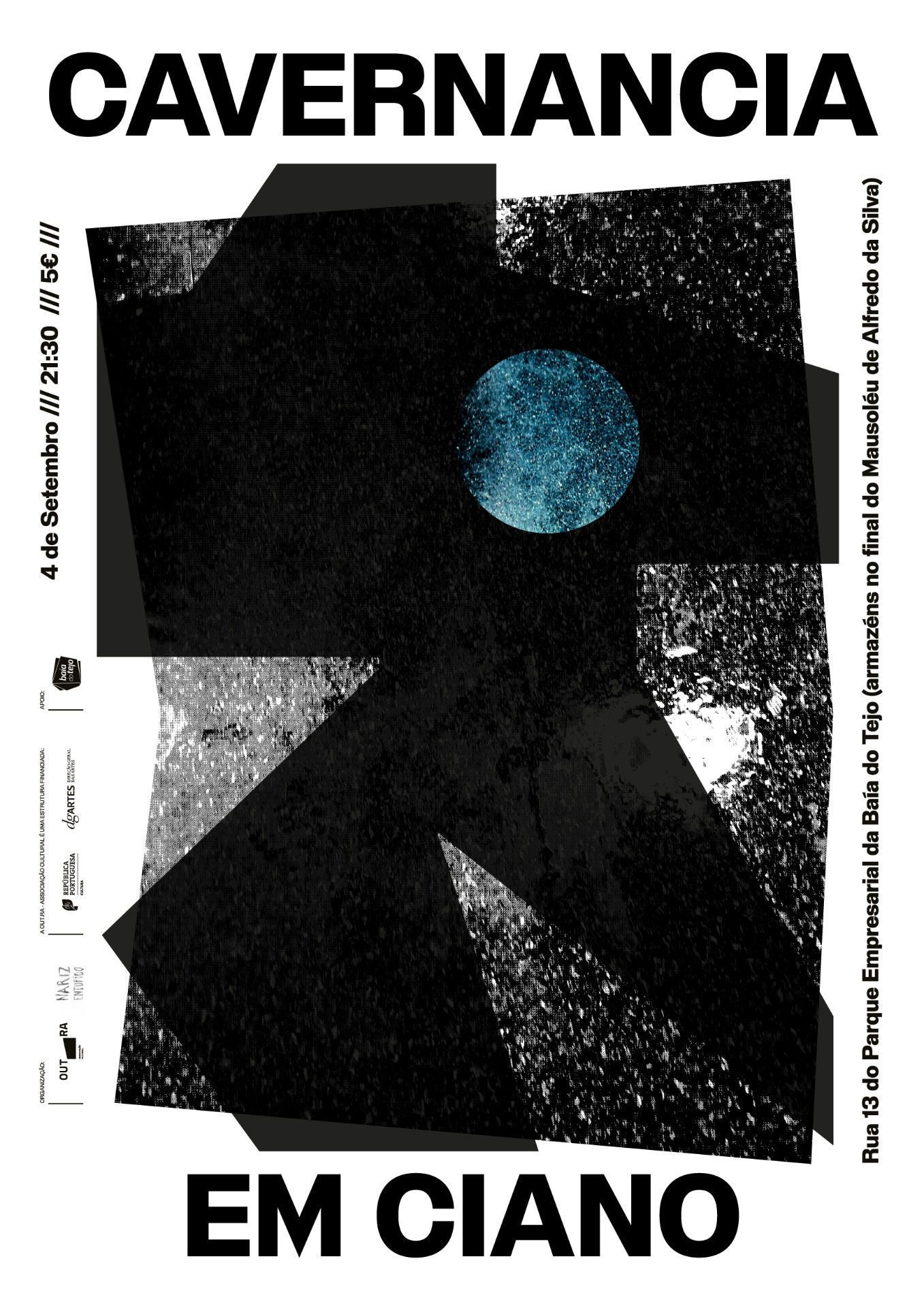 CAVERNANCIA é o novo projecto a solo do bem conhecido fotógrafo, vocalista, DJ e músico PEDRO ROQUE, e se gostaram das texturas ambientais, dos drones e do noise que foram apresentados no álbum de estreia «em ciano», que apesar de estar disponível digitalmente no bandcamp terá a sua edição oficial em cassete no próximo dia 3 de Setembro, é agora altura de elevar ainda mais o volume e passar ao palco. O concerto de lançamento da cassete, editada pela Nariz Entupido, será realizado no dia seguinte, 4 de Setembro, no Armazém 28/30, situado na rua 13 do Parque Empresarial Baía do Tejo, no Barreiro, e promete amplificar a experiência a uma outra dimensão. A organização do evento está a cargo da OUT.RA – Associação Cultural, em parceria com a Nariz Entupido. O início do concerto está marcado para as 21h30, com abertura de portas às 21h00. Podes consultar o cartaz aqui em baixo, e o link para a aquisição de bilhetes é este. Consulta também o evento no Facebook.