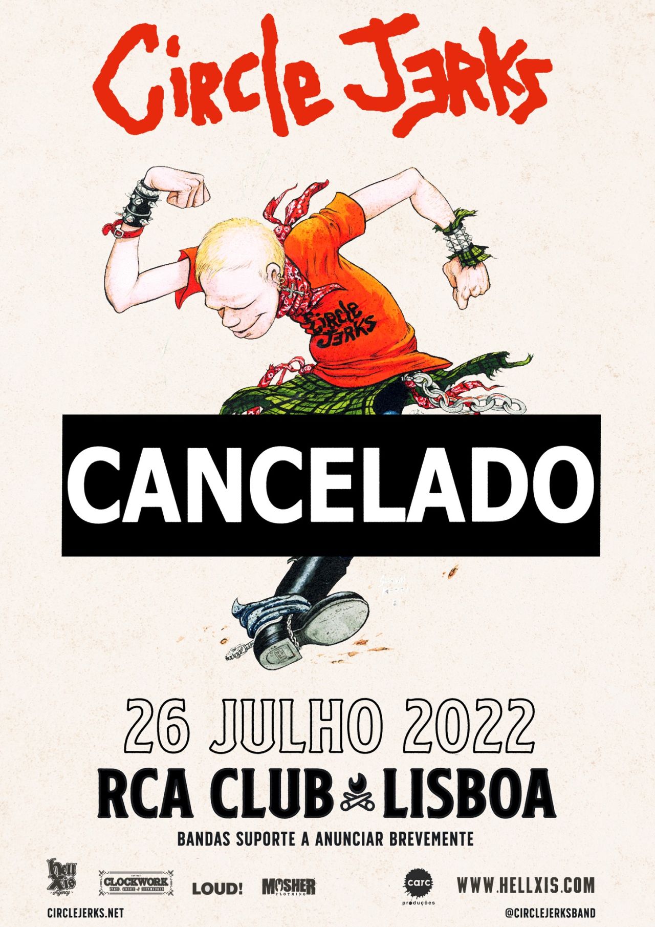 Originalmente anunciado para o dia 28 de Julho de 2021 e posteriormente adiado para o dia 26 de Julho de 2022 no RCA Club, em Lisboa, o espectáculo de estreia dos punk rockers norte-americanos CIRCLE JERKS em Portugal acaba de ser cancelado. “Lamentavelmente temos que vos informar do cancelamento do concerto dos Circle Jerks em Lisboa“, pode ler-se num breve comunicado divulgado pela Hell Xis Agency, responsável pelo espectáculo, nas suas redes sociais. “É mais uma daquelas bandas que gostaríamos muito ter por cá, mas que por opção de calendarização tomou a decisão de cancelar algumas datas na Europa, incluído Lisboa, ficando a promessa de nos visitarem na próxima tour europeia.” O reembolso dos bilhetes deve ser solicitado no local de compra a partir do dia 26 de Julho até ao dia 15 de Agosto. Activos desde 1979, os veteranos punks de Los Angeles são uma das bandas mais influentes da história do género, sendo que redefiniram todo o estilo e criaram um som próprio, sem nunca terem medo de arriscar, experimentar ou inovar.
