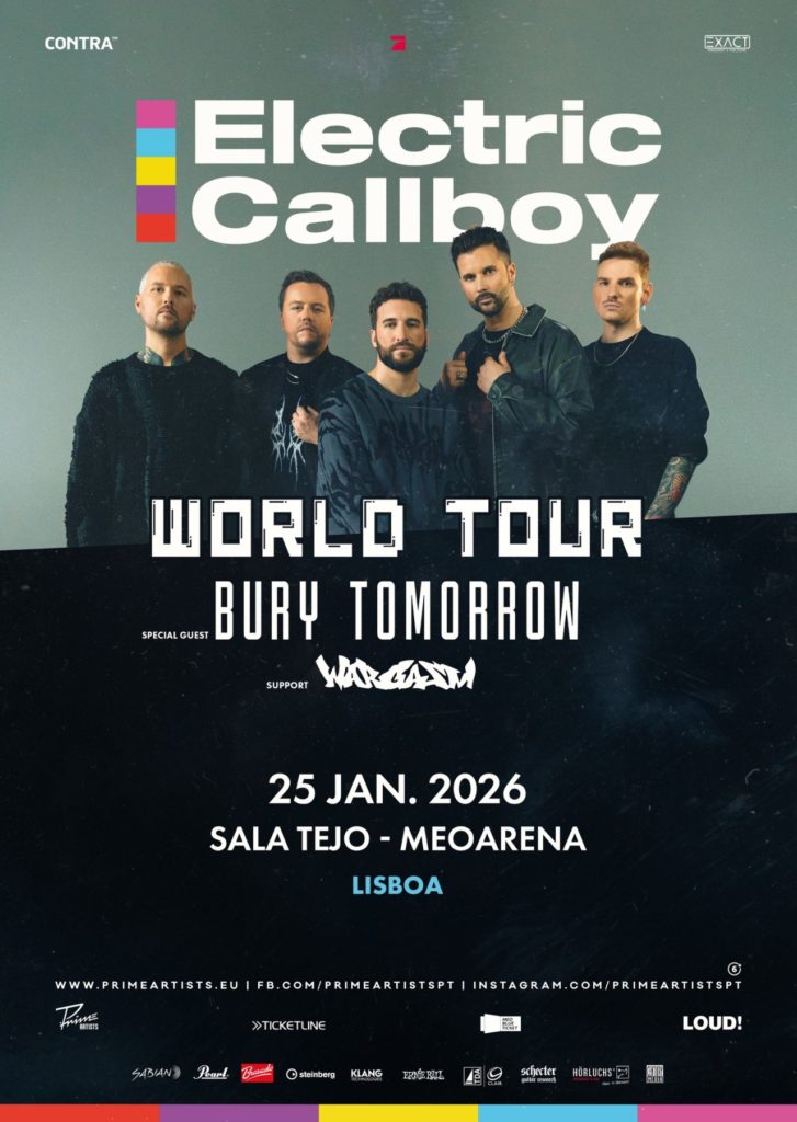 Recorde-se que, em Março, os ELECTRIC CALLBOY reforçaram o cartaz do seu muito aguardado regresso a Portugal com dois nomes de peso, com os britânicos BURY TOMORROW e os WARGASM a subirem ao palco da Sala Tejo da MEO ARENA, em Lisboa, na noite de 25 de Janeiro de 2026, como convidados muito especiais e banda de abertura, respectivamente. De resto, a WORLD TOUR 2025/2026 promete ser a mais ambiciosa digressão da carreira dos ELECTRIC CALLBOY, levando a banda alemã a algumas das maiores arenas do mundo.