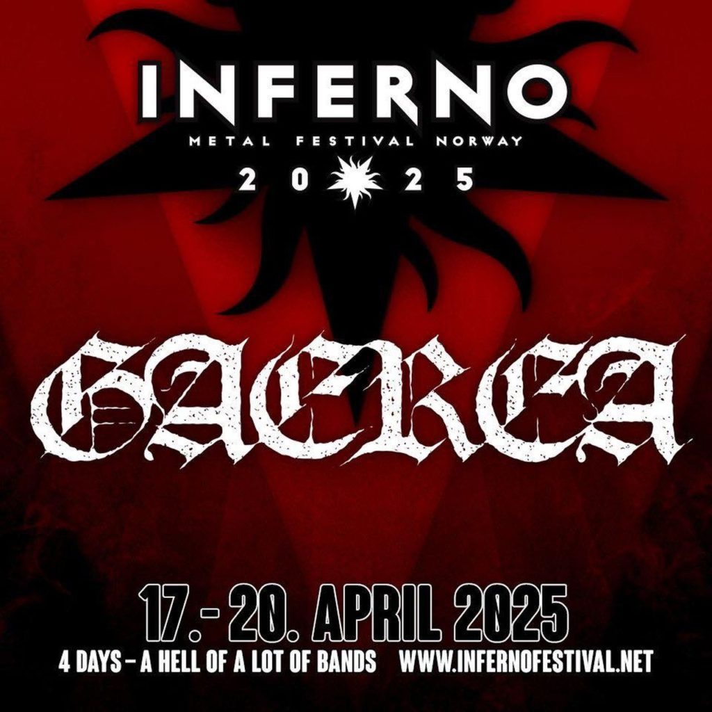 Os GAEREA acabam de confirmar a sua participação no Inferno Metal Festival, que decorre em Oslo, na Noruega, entre os dias 17, 18, 19 e 20 de Abril do próximo ano. Além da banda nacional, já está também confirmada na edição de 2025 do famoso festival norueguês a presença dos BEHEMOTH, 1349, TSJUDER, TIAMAT, BLOOD INCANTATION, AETERNUS, NECROPHOBIC, SPECTRAL WOUND, LAMENTARI, SETH, ANGIST, VIOLENT MAGIC ORCHESTRA, ABYSSIC, BYTHOS e SYN, entre muitos outros, num cartaz que já faz adivinhar um verdadeiro festim de extremismo sonoro.