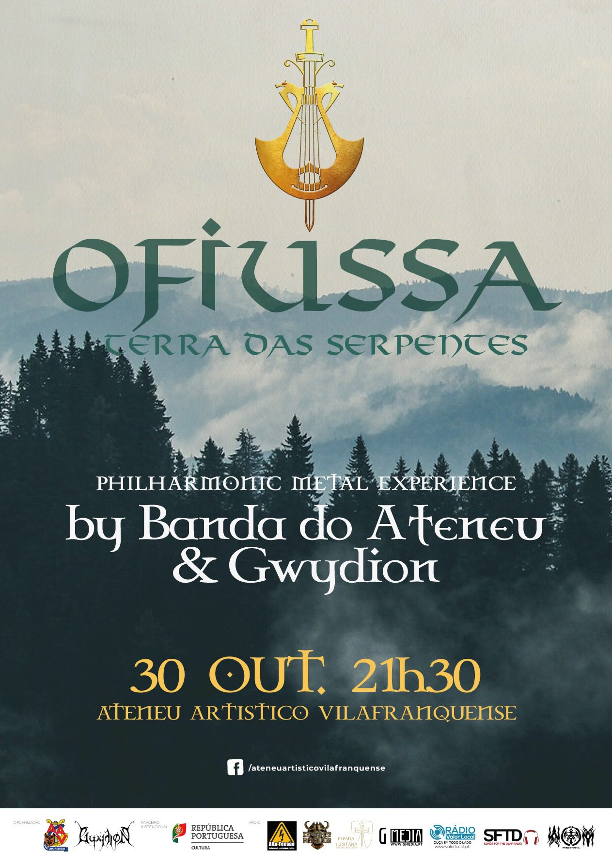 Não envolve dragões, mas até que não ficaria mal no palco ao lado dos GWYDION. Ou um drakkar, por exemplo. No próximo Sábado, dia 30 de Outubro, a oferta é outra e musical, com o sexteto a ousar uma nova experiência a que chama «Ofiussa – Terra de Serpentes». Tudo vai acontecer em Vila Franca de Xira, no Auditório do Ateneu Artístico Vilafranquense. Ao palco sobem os seis guerreiros lusos, acompanhados da Banda do Ateneu, numa simbiose entre metal e orquestra filarmónica, naquilo que o grupo designa por Philharmonic Metal Experience, sem dúvida o seu projecto mais ambicioso até à época. Recorde-se que o sexteto lançou o homónimo «Gwydion», quinto álbum de estúdio da banda e com selo da Art Gates Records, em 2020. Nas palavras do grupo, “Gwydion e a Banda do Ateneu trazem a vivência do ano, misturando a guerra, a harmonia, a garra e o saber”. Com início marcado para 21:30, os bilhetes encontram-se já à venda em www.bol.pt
