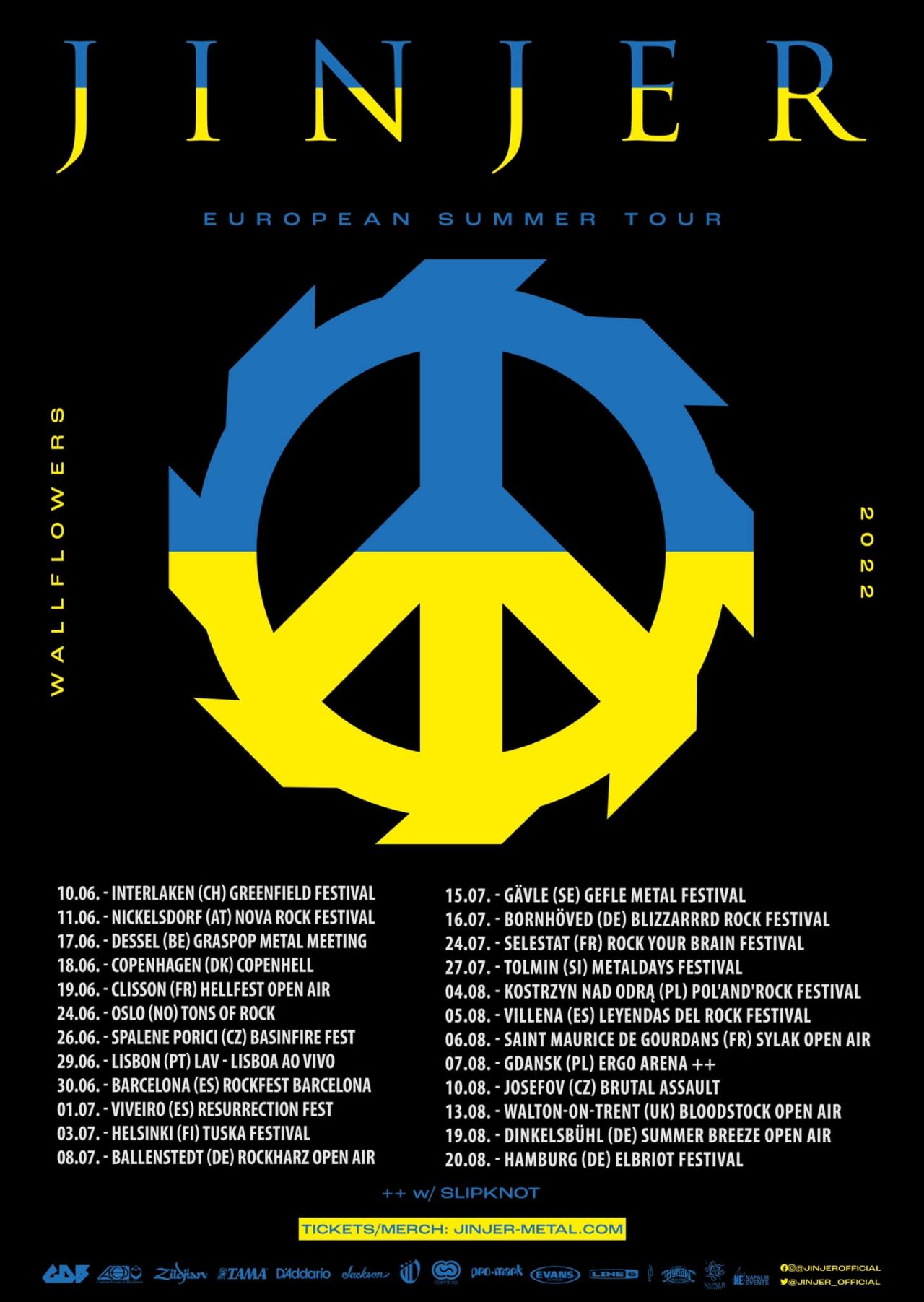 Os JINJER acabam de lançar um vídeo-clip oficial para o tema «Call Me A Symbol», que já pode ser visto no player em cima. Simultaneamente, a banda anunciou também que a sua próxima tour europeia — que passa por LIsboa, para uma data única a 29 de Junho, no LAV – Lisboa Ao Vivo — foi sancionada pelo Ministério da Cultura ucraniano. Os músicos liderados por Tatiana Shmailyuk foram autorizados a deixar o país como embaixadores da Ucrânia de forma a ajudarem a angariar fundos e sensibilizar os seus fãs em relação à situação atroz que o país está a enfrentar desde que foi sitiada pelo governo russo, numa invasão que começou em finais de Fevereiro. “Temos a grande honra de anunciar que, com a ajuda do Ministério da Cultura ucraniano, nos foi concedida autorização para viajar ao estrangeiro como embaixadores do nosso país para angariar fundos e sensibilizar os nossos fãs para a guerra que grassa actualmente no nosso país“, diz Eugene Abdukhanov, baixista dos JINJER, em comunicado à imprensa. “Como banda e como cidadãos, isto é uma honra enorme. Vamos fazer a nossa parte para garantir que esta guerra acabe o mais depressa possível! Venham apoiar, dancem e gritem os vossos corações pela Ucrânia!“. Como noticiado anteriormente, desde Abril, a banda já angariou mais de 120.000 euros com a venda de merchandise, com parte desse dinheiro a ir para um abrigo anti-bombas em Kiev e o restante a caminho de refugiados que necessitam de comida e vestuário.