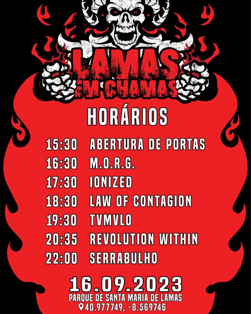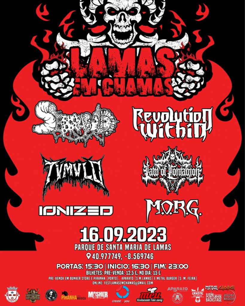 A muito aguardada 2.ª edição do festival LAMAS EM CHAMAS acontece já no próximo Sábado, dia 16 de Setembro, no Parque de Santa Maria de Lamas, em Santa Maria da Feira. Como é apanágio do evento, a organização explica que tentou “ter um cartaz o mais diversificado possível em termos de géneros dentro do som pesado e incluir bandas pertencentes à nossa região“.
