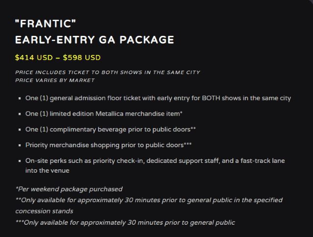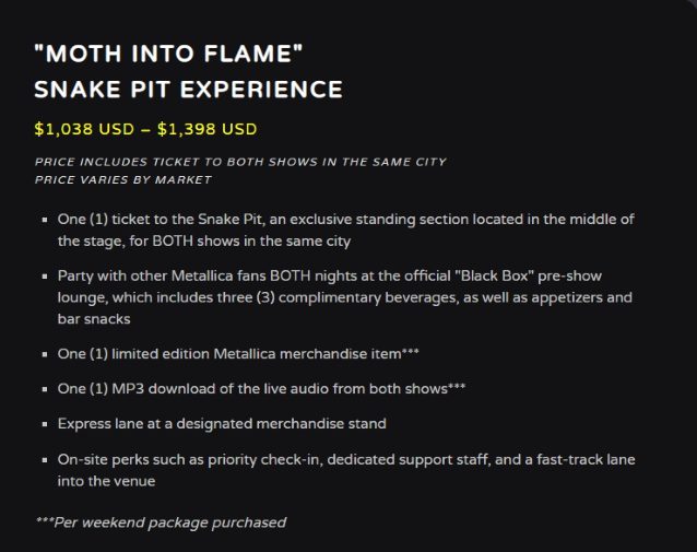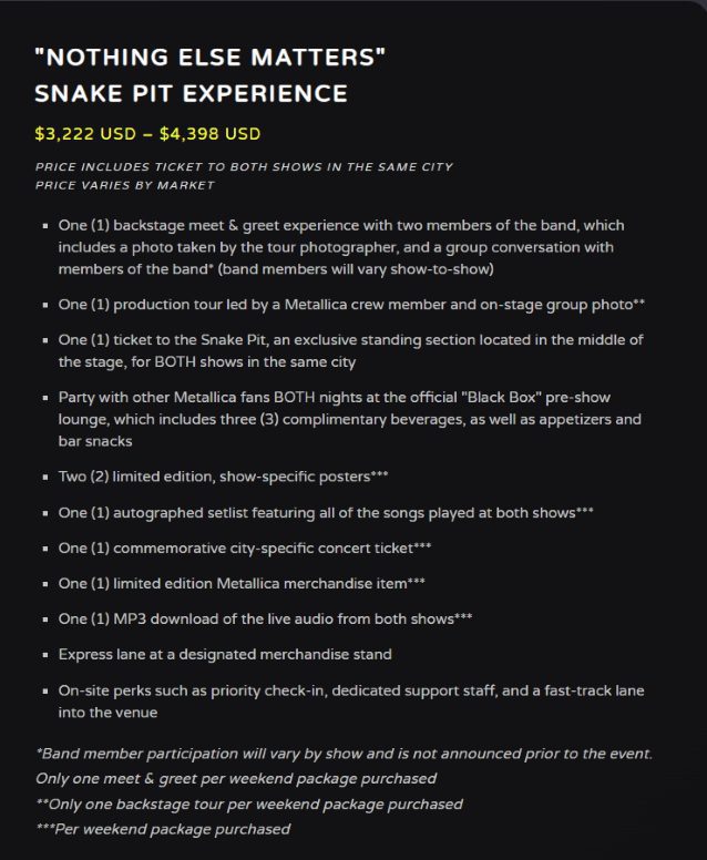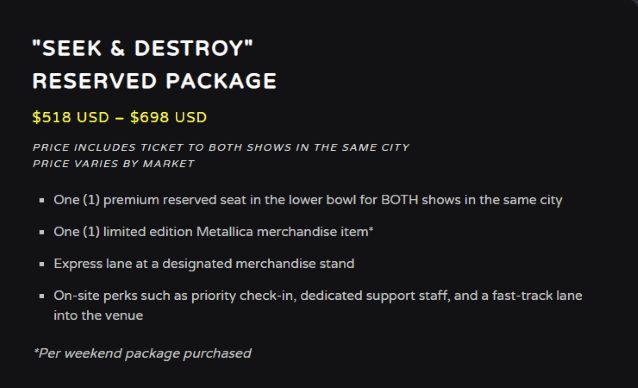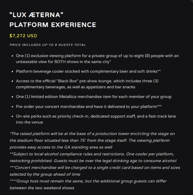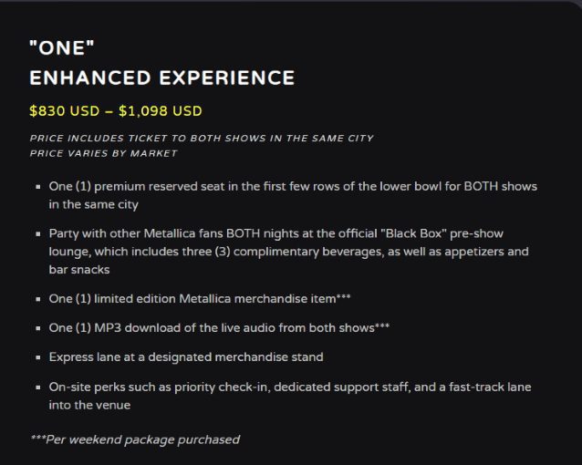 METALLICA: As “experiências melhoradas” da digressão ‘M72’ custam entre 400 e 7.000 euros