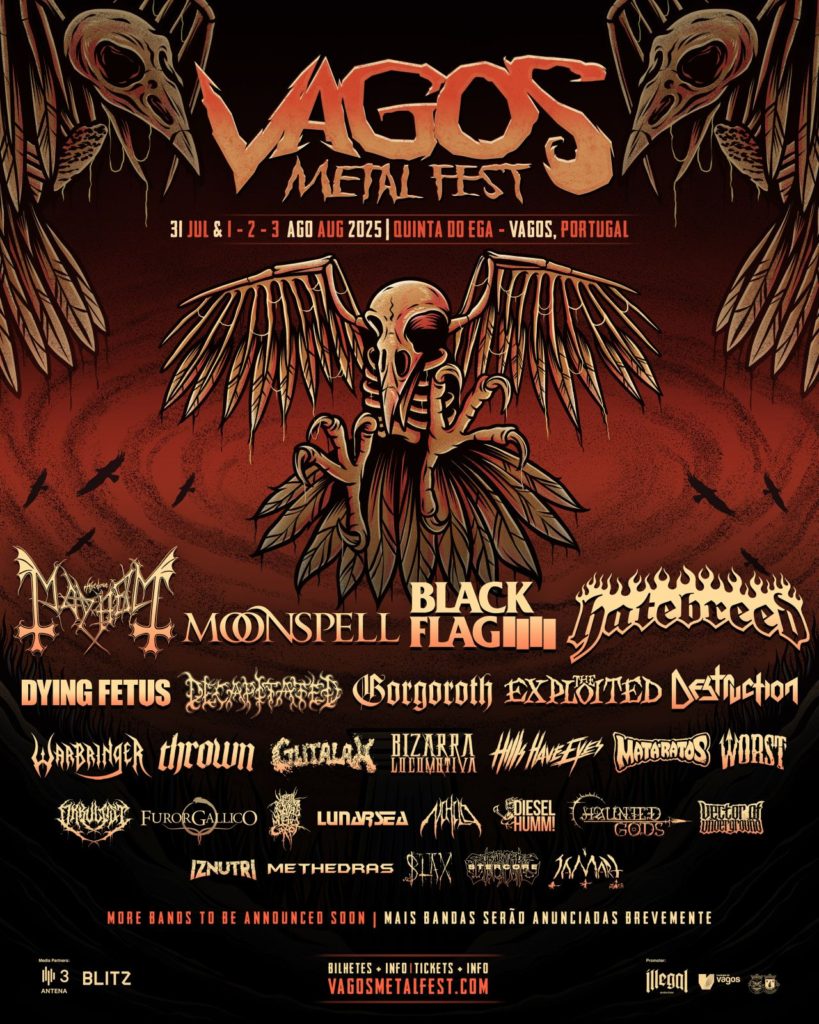 O Vagos Metal Fest continua a consolidar-se como um dos eventos essenciais para os fãs de música extrema em Portugal. Com um cartaz cada vez mais robusto e diversificado, a organização acaba de anunciar mais nove nomes que se juntam à programação deste ano, prometendo uma edição histórica. De 31 de Julho a 3 de agosto, a icónica Quinta do Ega, em Vagos, será o epicentro do metal, contando este ano com um dia extra de festival para amplificar a celebração.