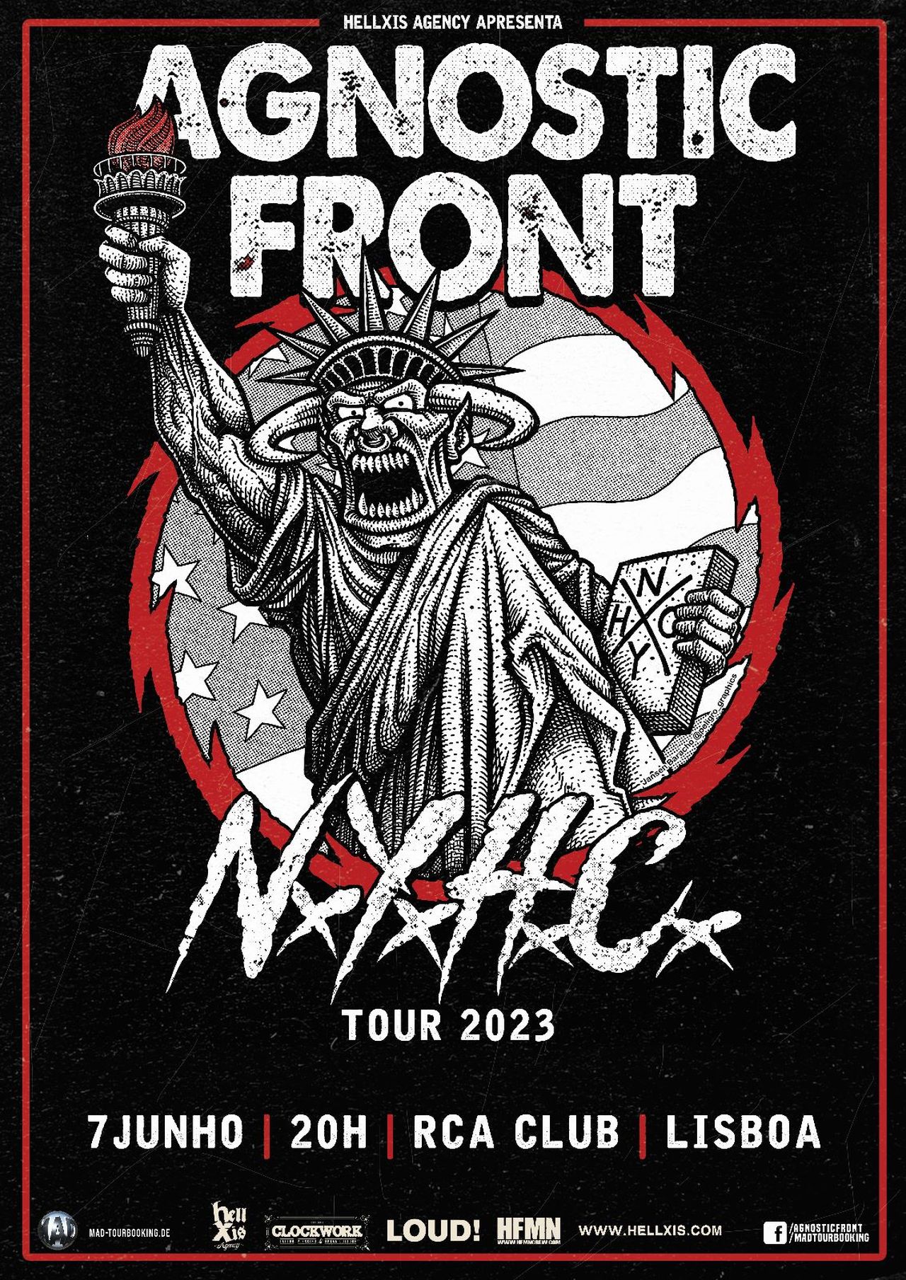 Depois de uma explosiva passagem por Portugal em 2019, os lendários AGNOSTIC FRONT vão regressar ao nosso país para um concerto único, agendado para o dia 7 de Junho, no RCA Club, em Lisboa. Na bagagem a banda traz aquele que é (ainda) o seu mais recente álbum de estúdio, «Get Loud!», mas estes espectáculos servem para celebrar também o 40.º aniversário do seu EP de estreia, «United Blood», que foi editado originalmente em 1983 através da AF Records. Altamente influenciados pelo espírito e atitude típicos do punk rock, os demolidores seis minutos e vinte e dois segundos de «United Blood» foram a primeira declaração de intenções da banda liderada pelo vocalista Roger Miret e pelo guitarrista Vinnie Stigma, sendo ainda hoje considerado um dos singles essenciais — e, se quiserem, uma das pedras basilares — do movimento punk hardcore como o conhecemos e, sobretudo, do NYHC. Surgido nos anos 80, o movimento hardcore nova-iorquino afirmou-se desde logo como um reflexo intenso, mas preciso, de uma cidade em crise, e nenhuma banda tipificou melhor o som e a fúria da época do que os AGNOSTIC FRONT. Pegando na raiva inconformada, simples e veloz de bandas punk como os Ramones, Dead Boys e Dictators, eliminando as melodias e aumentando ainda mais a velocidade, o impacto e a raiva, Miret e companhia forneceram a banda-sonora perfeita e inevitável para uma cidade atolada em dívidas crime, com centenas de crianças carentes em Manhattan e nos bairros periféricos a formarem bandas para protestar contra as privações e preconceitos quotidianos da existência urbana. E o mais curioso — e triste — é que, quatro décadas depois, temas como «No One Rules», «Last Warning» ou «United Blood» continuam a fazer tanto sentido como quando foram lançados originalmente, Os bilhetes para o concerto já estão disponíveis aqui, pelo preço único de 22€.