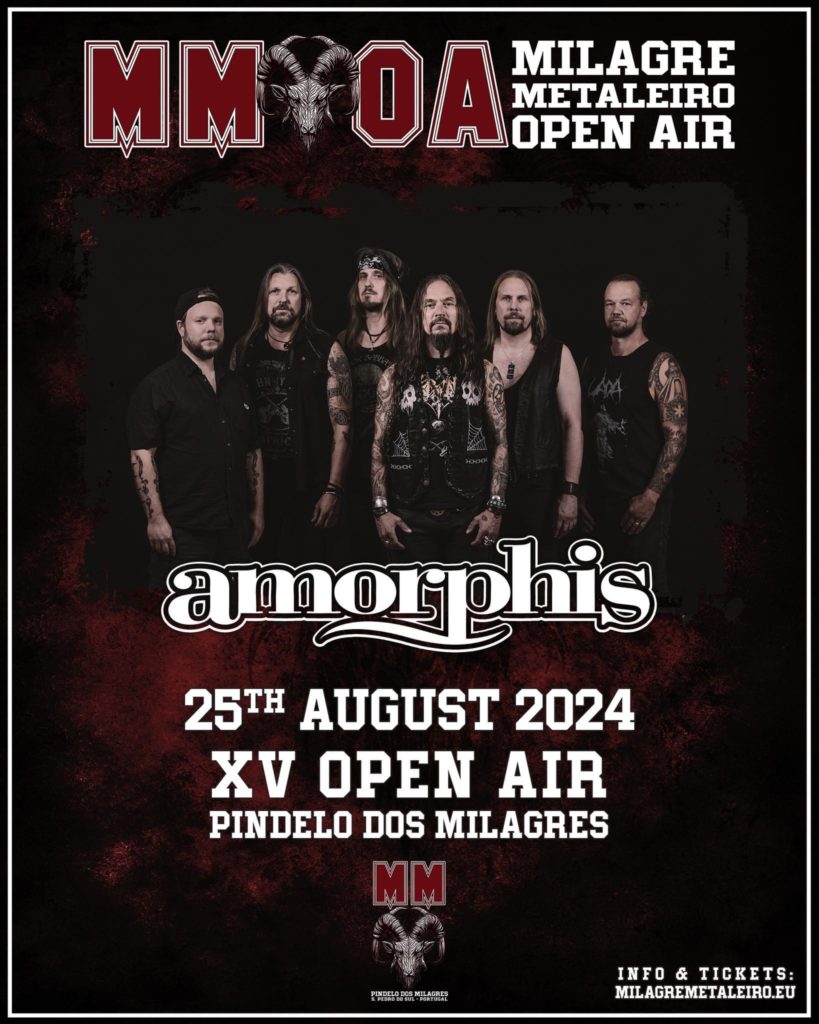 A organização do festival MILAGRE METALEIRO OPEN AIR confirmou a presença dos AMORPHIS no cartaz da sua edição de 2024, que decorre nos dias 23, 24 e 25 de Agosto, em Pindelo dos Milagres, freguesia do município de São Pedro do Sul. A banda finlandesa junta-se aos conterrâneos KORPIKLAANI, aos gregos ROTTING CHRIST, aos alemães METALIUM, AXXIS e FREEDOM CALL, aos britânicos ONSLAUGHT e aos brasileiros THE TROOPS OF DOOM, entre outros.