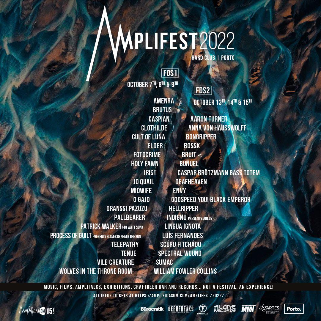 É um anúncio muito especial que a Amplificasom reservou para este início de Maio, com as seis novas confirmações que enriquecem ainda mais o cartaz já de si muito (muito mesmo!) bem preenchido do Amplifest 2022, que marca o regresso do festival portuense depois da ausência forçada desde 2019 por causa da maldita pandemia. A particularidade destes novos nomes é o facto de serem todos nacionais. Equilibradamente, são-nos oferecidos três nomes para cada um dos fins-de-semana em que o evento vai decorrer. Assim, no FDS1, vamos ter Clothilde (projecto electrónico de Sofia Mestre), O Gajo (João Morais, ex-Corrosão Caótica e Gazua, com a sua viola campaniça) e os Process Of Guilt, estes últimos com um concerto especial de apresentação do seu novo álbum, «Slaves Beneath The Sun». Já para o FDS2, teremos os Indignu (igualmente com concerto especial de apresentação de «Adeus»), Luís Fernandes (o fundador dos peixe : avião) e a mistura explosiva de punk, industrial e funaná cabo-verdiano dos Scúru Fitchádu. Ficamos agora à espera do último anúncio, que estará para breve, no qual ficaremos a saber os últimos nomes que se vão juntar a estes seis, e a pesos-pesados do calibre de Amenra, Cult Of Luna, Oranssi Pazuzu, Anna Von Hausswolff, Aaron Turner, Godspeed You! Black Emperor e tantos outros já confirmados. Recorde-se que a edição 2022 do AMPLIFEST se divide por dois fins de semana em Outubro, o FDS1, a ter lugar entre 7 e 9 de Outubro, e o FDS2, marcado para 13, 14 e 15, sempre no Hard Club, no Porto. Detalhes sobre o alinhamento, datas e outras informações podem ser consultadas aqui.