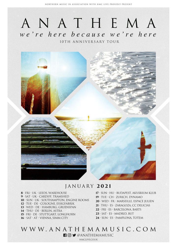 Os lendários ANATHEMA vão comemorar o 10.º aniversário da edição do álbum «We Are Here Because We´re Here», reeditando-o digitalmente no dia 24 de Julho com quatro novas faixas extra, todas com o subtítulo “2020 Lockdown Version“. Com planos traçados para levar o álbum para a estrada numa série de espectáculos exclusivos de aniversário em toda a Europa, os de Portugal foram os últimos a acontecer, a banda britânica viu-se forçada a adiar o restante da digressão devido à pandemia da Covid-19, mas aproveitou o prazo de licenciamento de «We Are Here Because We´re Here» para levar a cabo esta edição. Aquando do seu lançamento original, em Maio de 2010, o álbum marcou o regresso dos músicos às edições depois de seis anos de silêncio, afirmando-se como “um trabalho multicolorido e multicamadas de emoção, paixão e intensidade“. Entretanto, os ANATHEMA aproveitaram também para anunciar o reagendamentos dos concertos adiados, agora apontados para Janeiro de 2021.