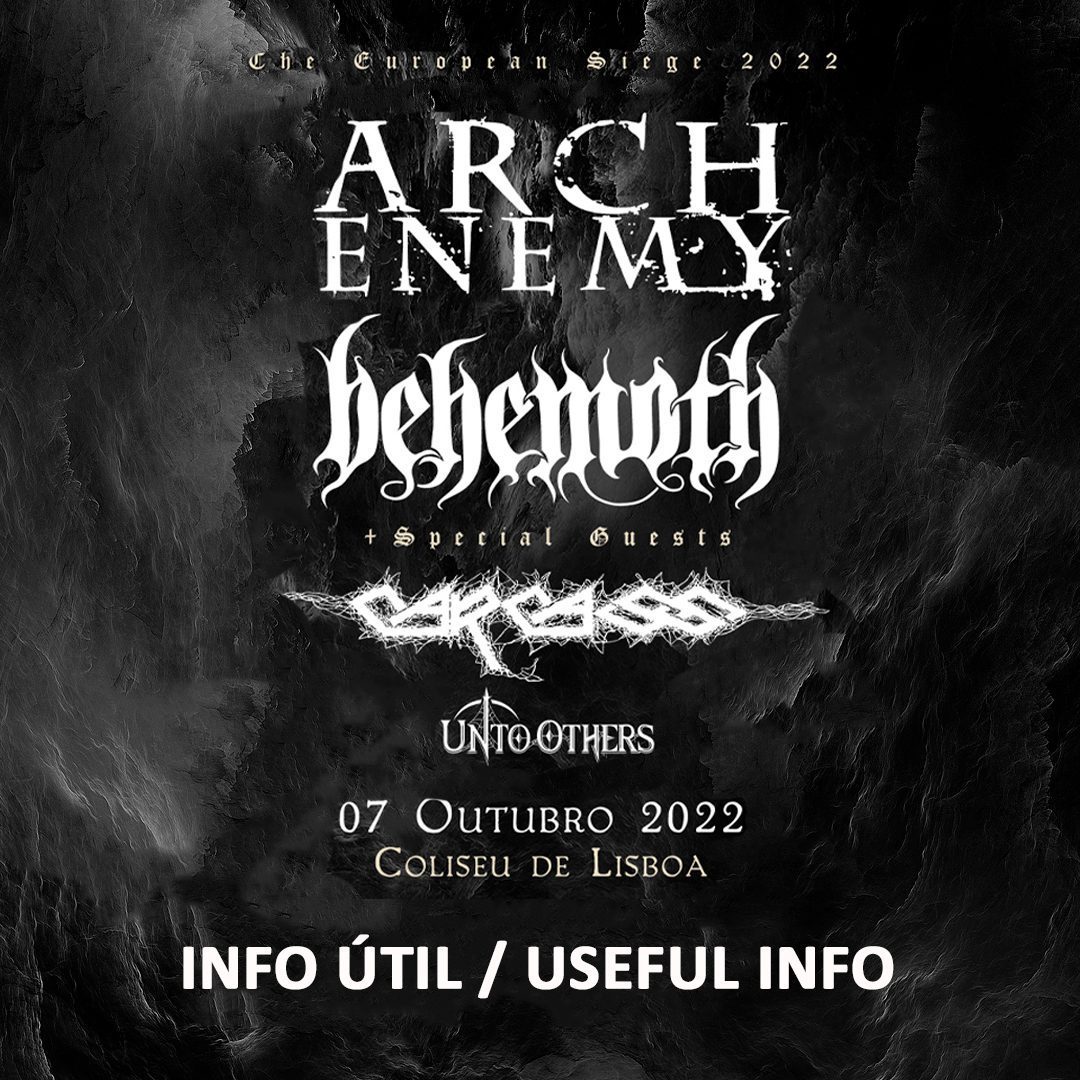 Depois de dois anos de paragem forçada pela pandemia e muita antecipação em relação a um hipotético regresso à normal actividade de concertos e digressões, é já na próxima sexta-feira, dia 7 de Outubro, que a The European Siege Tour faz uma muito aguardada paragem no Coliseu dos Recreios, em Lisboa. Encabeçada pelos suecos ARCH ENEMY e pelos polacos BEHEMOTH, e contando com os britânicos CARCASS e os UNTO OTHERS como bandas de suporte, esta rota tem estado a registar lotações esgotadas um pouco por todo o lado e promete ficar marcada na memória de todos os que comparecerem ao apelo de duas das propostas mais icónicas – e bem sucedidas! – que a música extrema tem hoje para oferecer. Os titãs do melodeath e os porta-estandartes de uma sonoridade que tanto vai beber ao death como ao black metal, juntam assim forças nesta rota em co-headlining sem precedentes, que tem como convidados especiais, as lendas britânicas do death metal CARCASS e os muito promissores norte-americanos UNTO OTHERS. Os bilhetes para o concerto custam 38€, e ainda estão disponíveis nos locais habituais e aqui. Em baixo podes consultar os horários das actuações e toda a informação necessária para assistires ao espectáculo em segurança.
