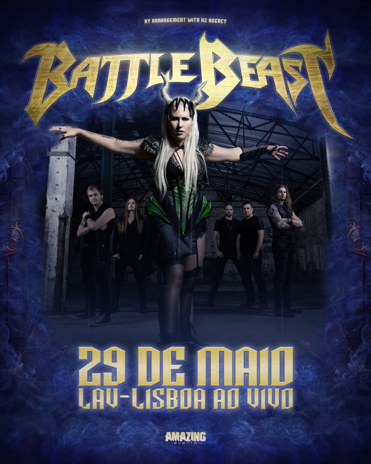 Os finlandeses BATTLE BEAST vão estar de regresso a Portugal já no dia 29 de Maio para um concerto único a decorrer no LAV – Lisboa Ao Vivo. Na bagagem, a banda liderada por Noora Louhimo traz o seu mais recente disco de estúdio, «Circus Of Doom», que foi lançado a 21 de Janeiro de 2022 através da Nuclear Blast Records. Formados em 2008, os BATTLE BEAST venceram o concurso Wacken Metal Battle no ano de 2010, o que lhes valeu um vínculo a um dos maiores selos discográficos da atualidade no mundo de peso. Foi já depois de terem assinado com a Nuclear Blast e de terem saído vencedores do concurso de bandas do maior festival alemão de metal, que lançaram o LP de estreia «Steel», fazendo-se à estrada como apoio aos companheiros de editora e mestres do metal sinfónico Nightwish. Os jovens músicos de Helsínquia foram recebidos com fervor pelo público dos gigantes finlandeses e, desde então, não mais pararam de crescer, sobretudo desde a entrada da vocalista Noora em 2012. A tocar em salas cada vez maiores e em nome próprio, a banda actuou também em festivais de renome com o Bloodstock Open Air e o Summer Breeze, estabelecendo-se, à força de riffs pujantes, refrões pegajosos e energia contagiante, como uma das mais sólidas forças emergentes do heavy metal moderno. No espaço de pouco mais de uma década, o grupo correu este e o outro lado do Atlântico, apoiado em cinco discos a que ninguém que goste de heavy metal pode pôr qualquer defeito. Os ingressos para este regresso a Lisboa já estão disponíveis aqui.