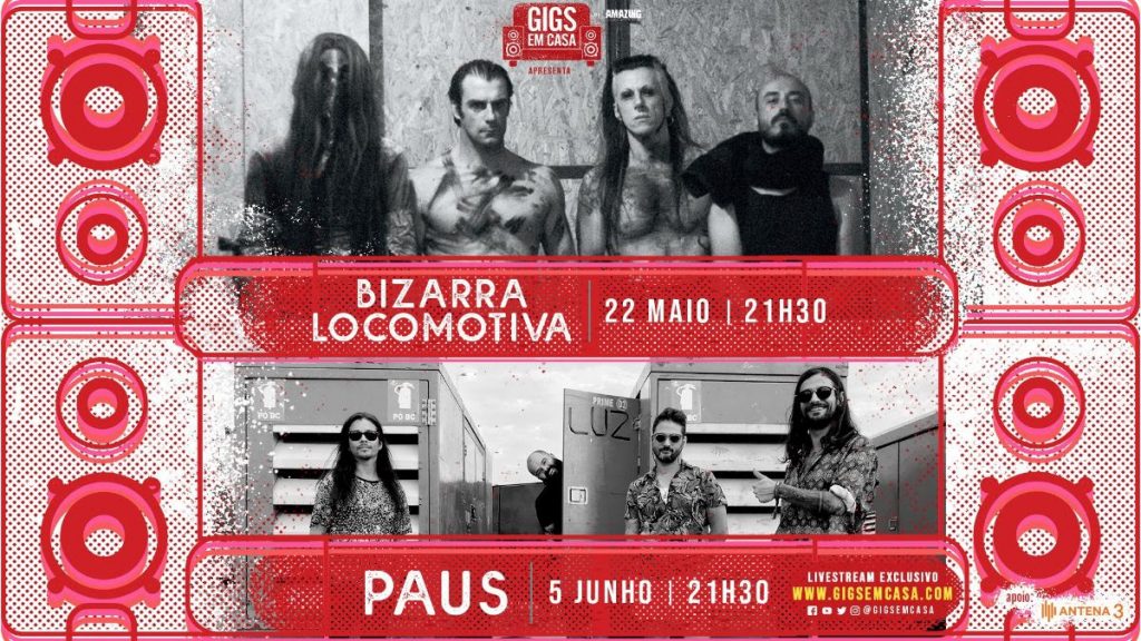 Já na sequência dos muito bem recebidos espectáculos dos PESTE & SIDA, FREDDY LOCKS e KAPPA JOTTA, os BIZARRA LOCOMOTIVA vão ser os protagonistas da próxima edição da GIGS EM CASA, que vai ser transmitida já na próxima sexta-feira, dia 22 de Maio. “No dia em que regressaríamos aos palcos, vamos de alguma forma compensar essa ausência (adiamento)“, diz Miguel Fonseca, o guitarrista da banda. “Ainda que à distância o que vos pedimos é que no recato dos vossos lares se vistam a rigor e nos enviem imagens de forma a que a interação seja a máxima possível. Para nós nunca seria, ou será o futuro, mas é o presente e vamos deixar em palco os mesmos litros de suor e rock que deixamos usualmente, talvez até mais, saudades vossas, muitas. Até sexta!“. Confirmada está também a presença dos PAUS na plataforma, com actuação agendada para o dia 5 de Junho. Com mais estes dois nomes confirmados, a GIGS EM CASA continua a sua missão de reactivar parte da cultura a nível nacional com mais duas bandas e respectivas equipas a serem remuneradas pelos espectáculos e a abranger dois estilos musicais que ainda não tinham sido contemplados. Outra particularidade destes dois concertos, é a alteração de espaço, promovendo também a distribuição por outras salas nacionais. Depois dos dois primeiros espectáculos terem sido transmitidos a partir do RCA Club, tanto o espectáculo de Kappa Jotta, da passada semana, como estes dois, serão produzidos no LAV – Lisboa ao Vivo.