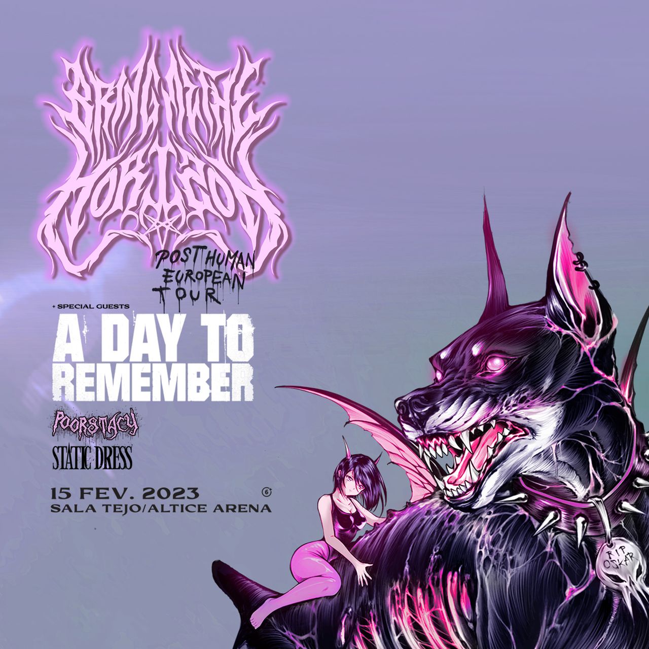 Recorde-se ainda que, para tornar o regresso a Portugal num verdadeiro acontecimento, os BRING ME THE HORIZON criaram um “pacote” muito especial, para o qual convidaram a banda que os fãs gostam de definir como “pop mosh”, os A DAY TO REMEMBER. Jeremy McKinnon na voz, Neil Westfall e Tom Denney nas guitarras, Joshua Woodard no baixo e o Bobby Scruggs na bateria trazem na bagagem o seu sétimo álbum de estúdio, «You’re Welcome», lançado a 5 de Março de 2021 e que incorpora o brilho pop no músculo metalcore, como resultado de uma mistura única de emo, pop-punk, hardcore e metal. A Sala Tejo vai receber também os POORSTACY e o emo-rap incubado na Florida contido no EP de estreia «I Don’t Care», em que a mistura de guitarras, batidas de hip-hop e letras carregadas de emoção são o reflexo directo de uma adolescência passada a ouvir hip-hop, metal e punk. A abertura da noite vai ficar a cargo dos roqueiros ingleses STATIC DRESS, que se estrearam no ano passado com o álbum «Rouge Carpet Disaster».