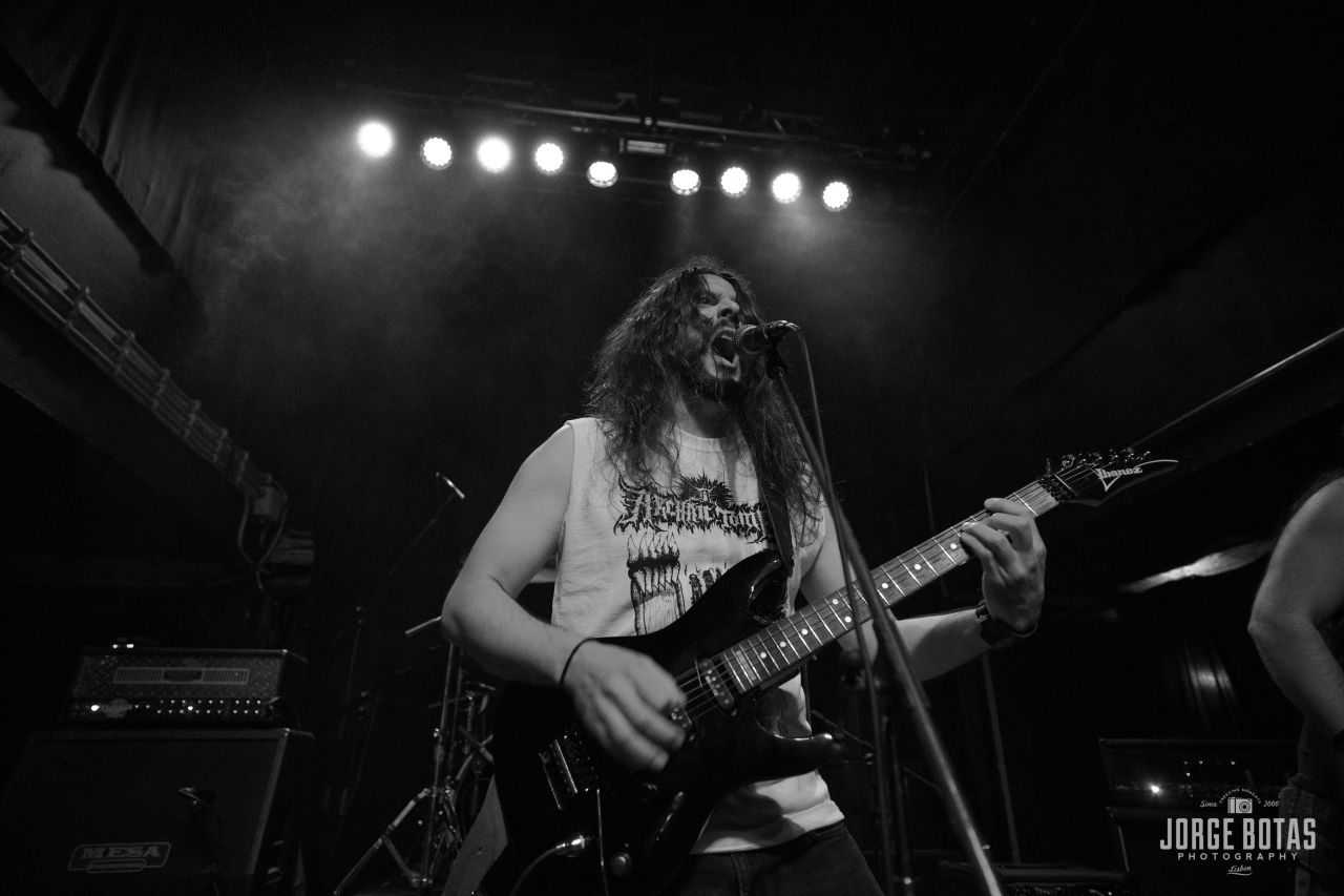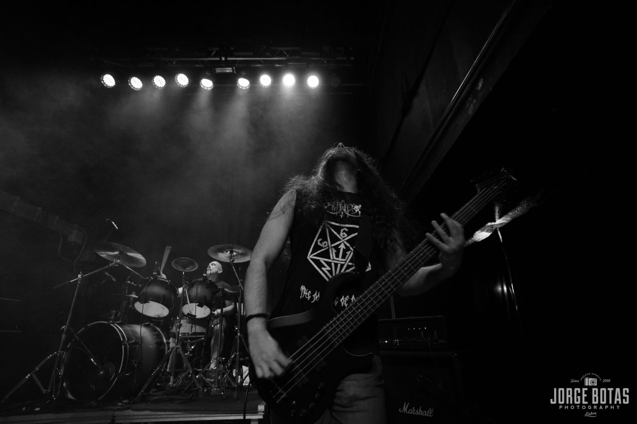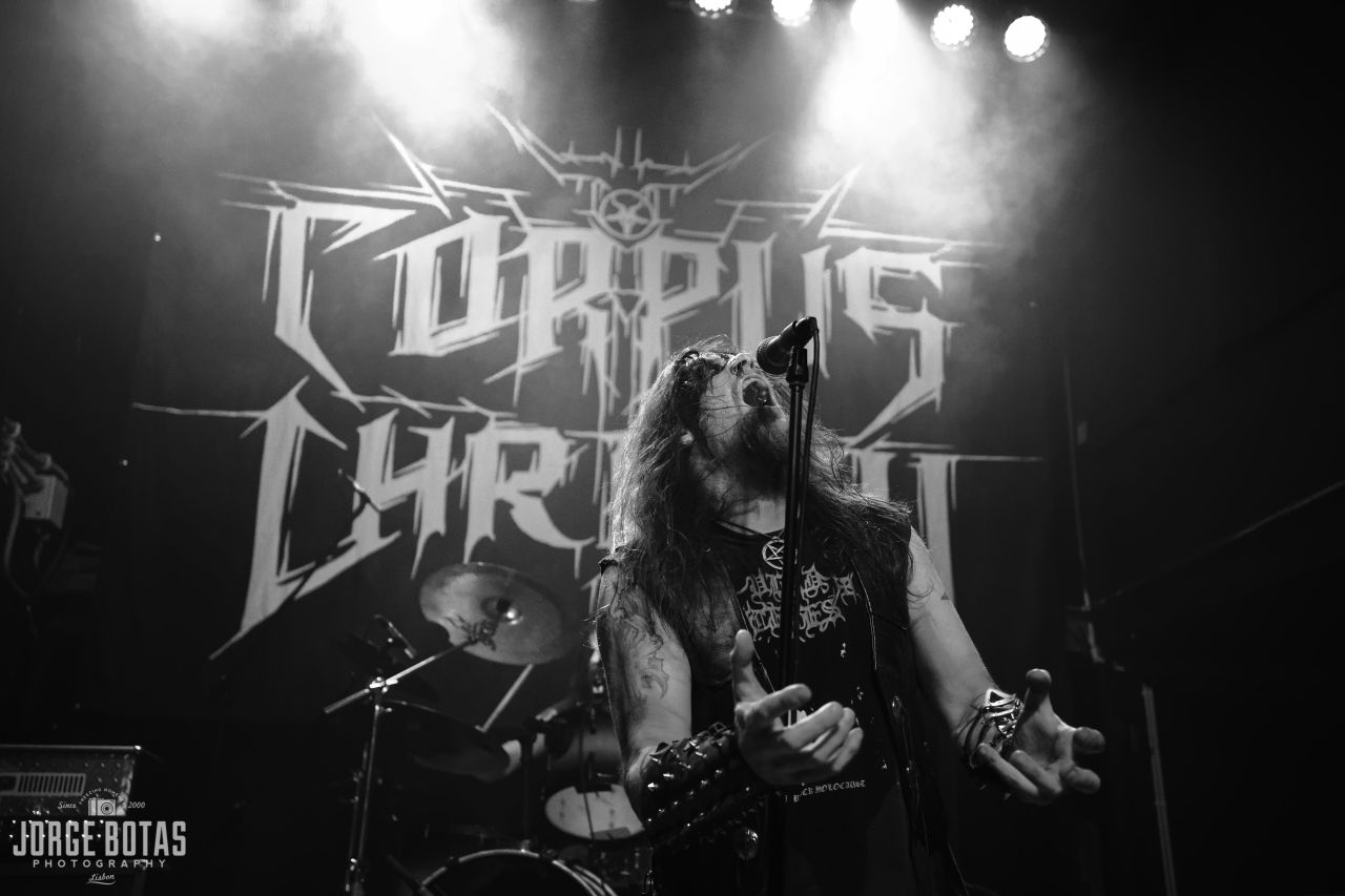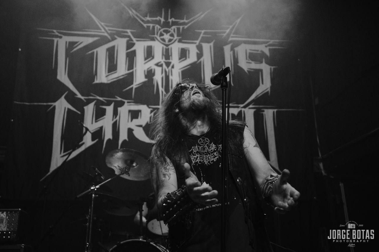 Noite quente em Lisboa para receber o concerto de apresentação do novo trabalho dos CORPUS CHRISTII, «The Bitter End Of Old». A celebração começou cedo com as hordes metaleiras a chegarem atempadamente assistirem à actuação de estreia dos PHENOCRYST, que aproveitaram a ocasião para mostrar o seu primeiro disco, «Explosions». Apesar do som não estar perfeito, longe disso, acabou por ajudar à brutalidade do som death metal old school da banda dos arredores de Lisboa. Tratando-se de uma primeira actuação ao vivo, notou-se a falta de algum ritmo aos músicos, mas acabou por ser uma estreia positiva e que deixou boas indicações em relação ao futuro de um projecto que promete dar que falar. Os CORPUS CHRISTII, por seu lado, já dispensam quaisquer apresentações. Nome estabelecido na cena black metal nacional e um dos portas-estandartes do género em terras lusas, têm na novidade «The Bitter End Of Old» já o seu 9.º longa-duração de uma carreira que já leva quase um quarto de século. Foi ao som de «The Predominance», do novo disco, que a banda de Nocturnus Horrendus iniciou as hostilidades. Seguiram-se «Unearthly Forgotten Memory», «From Here To Nothing» e «For I Am All», t todas também do mais recente lançamento. Os músicos mostraram-se super coesos, com um som sem grandes falhas e com o líder e mentor do projecto a comandar de forma exímia o espectáculo. O momento alto terá sido «All Hail… (Master Satan)», com o público a juntar-se em uníssono à banda para o refrão. A noite terminou ao som de «Stabbed», deixando mais uma prova de que os CORPUS CHRISTII são, sem dúvida, uma das melhores bandas a praticar black metal em Portugal.