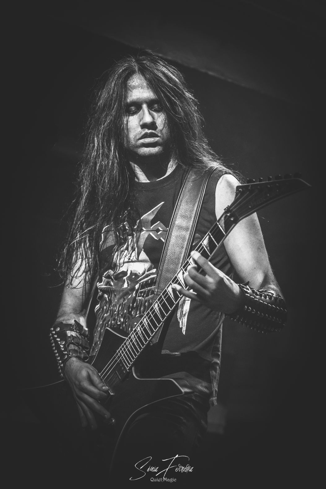 Quando conseguimos entrar finalmente na sala, os FILII NIGRANTIUM INFERNALIUM já estavam bem lançados na sua actuação, sendo que a banda tinha começado por dar foco ao já referido e incontornável «A Era do Abutre». Destaque para o tema «Herança de Outono», que contou com a participação vocal de ‘Wanderer’ (dos Göatfukk, ex-DECAYED). As surpresas não se ficaram por aqui, no entanto, com um final apoteótico que contou com a participação de Mário Figueira (dos RAGE AND FIRE, ex-RAVENSIRE) na guitarra e de Lex Thunder (dos TOXIKULL, ex-MIDNIGHT PRIEST) na voz para uma alucinante interpretação de «Cadafalso». Não só este tema é o ideal para acabar qualquer concerto — porque admitamos, não há nada que se possa tocar a seguir que o supere — como também a consciencialização de que este foi um concerto demasiado pequeno para o que público ansiava.