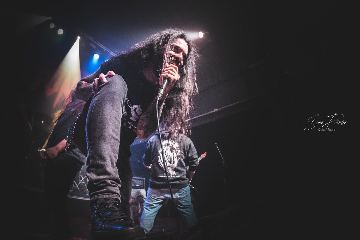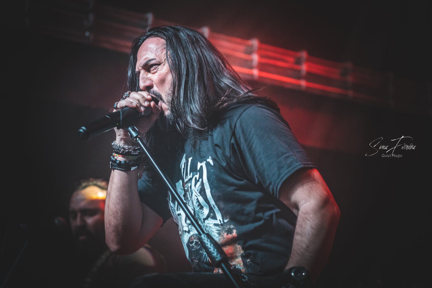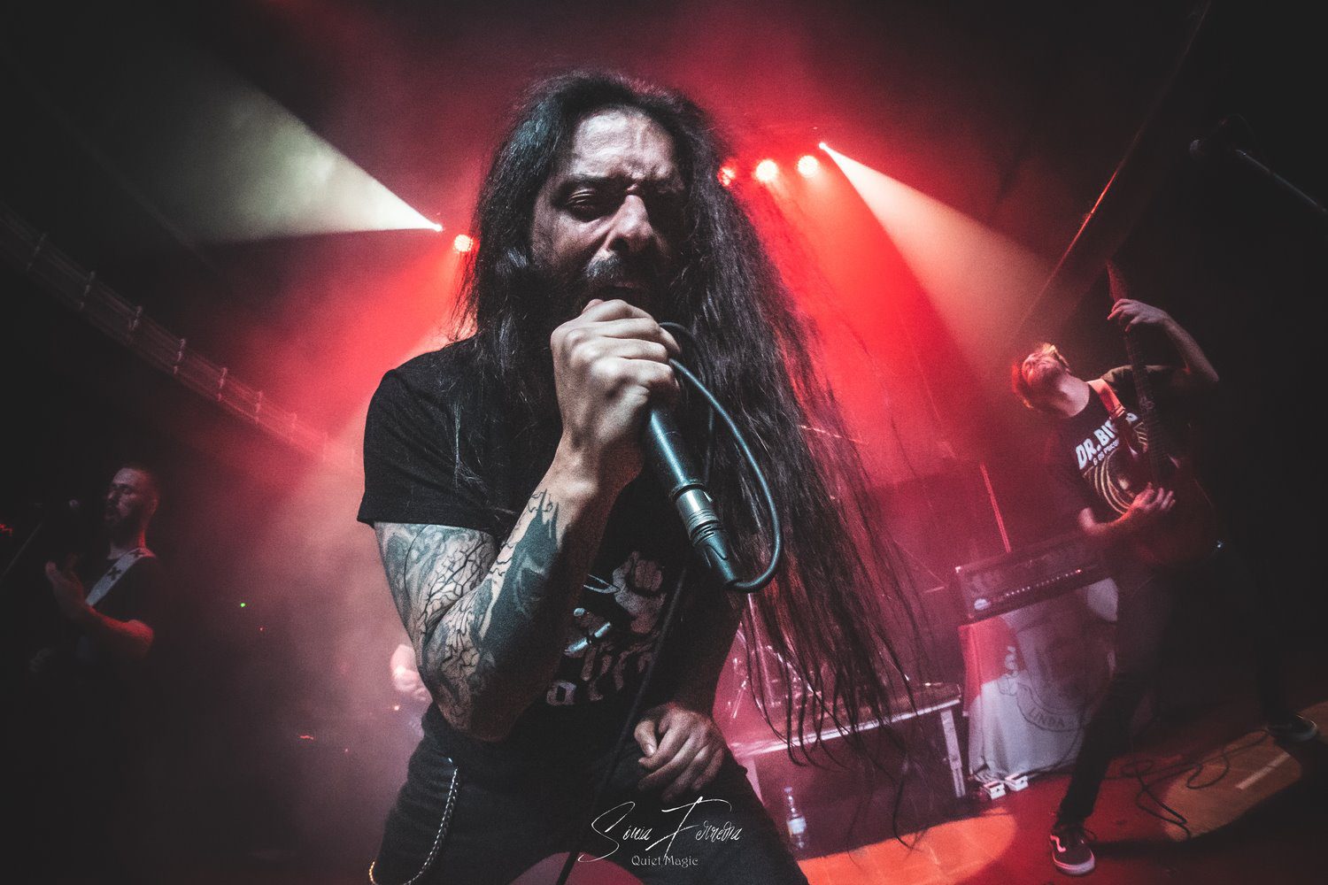 Num ponto diferente da carreira, mas afirmando-se também uma banda que tem tido um interessante percurso na cena nacional, subiram ao palco os ALL AGAINST. Mais uma prova da persistência e perseverança necessárias para quem quer fazer música pesada neste jardim da Europa à beira-mar plantado. Quando estavam a trabalhar na composição de «The Day Of Reckoning», ficaram sem vocalista, num golpe que poderia ter sido fatal. Sem desistir, encontraram o sucessor à altura na figura de Henrique Martins, que lhes permitiu encontrarem mais um ponto alto na sua carreira. Como seria esperado, o foco foi mesmo o já mencionado álbum de originais lançado precisamente naquele dia pela Amazing Records que foi tocado na íntegra, embora o início tenha sido mesmo com um regresso ao passado e a junção de «Weapons Of Mass Distraction (WMD)» com «Medusa». Este novo capítulo vê a banda apostada em continuar a evoluir e a tornar o seu som mais trabalhado, mas sem nunca perder de vista as letras de consciência social assim como a abordagem mais moderna ao thrash. Apesar da intensidade da música em cima do palco, e das instigações por parte de Henrique Martins, o público estava algo tímido, mas a recepção foi bem positiva.