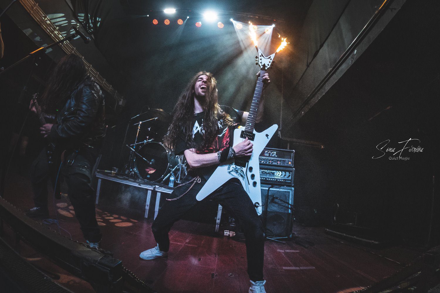 Foi a jovem banda que iniciou a noite com o seu thrash old school a fazer o devido “tributo” a todos os clássicos do género. Apesar de terem um repertório ainda curto, os ALPHA WARHEAD compensam essa e outra qualquer falha que lhes possa ser apontada com uma verdadeira paixão às raízes do género e com uma dose enorme de boa disposição e descontracção. Algo que supera até contrariedades como o facto da primeira música, «Backfire», ter sido tocada quase às escuras. Houve oportunidade ainda para se ouvir um tema novo, intitulado «Appolyon», assim como uma cover de «Angel Of Death», cantada pelo baixista Pedro Silva, e o mítico solo da «Tornado Of Souls», que antecedeu «Fuel To The Fire». Continuam a ser uma das grandes promessas do thrash metal nacional e cada vez mais sentimos a evolução na aprendizagem do que é dar um grande espectáculo — o final, com a “pirotecnia” no final da «Code Red», terá de ser sempre referido como um ponto alto, onde não faltou ainda a homenagem a Josua Madsen, recentemente falecido baterista dos Artillery que tinha tocado naquela sala há pouco mais de um ano com a banda portuguesa.