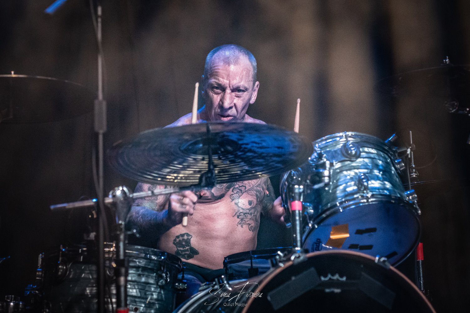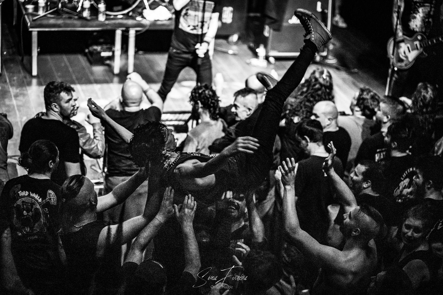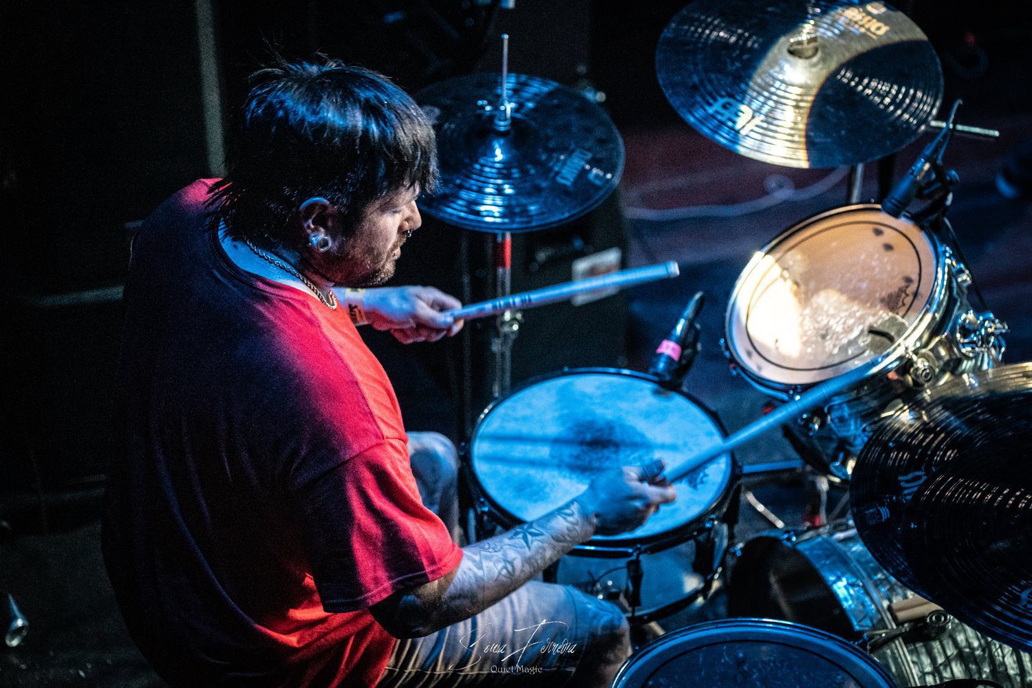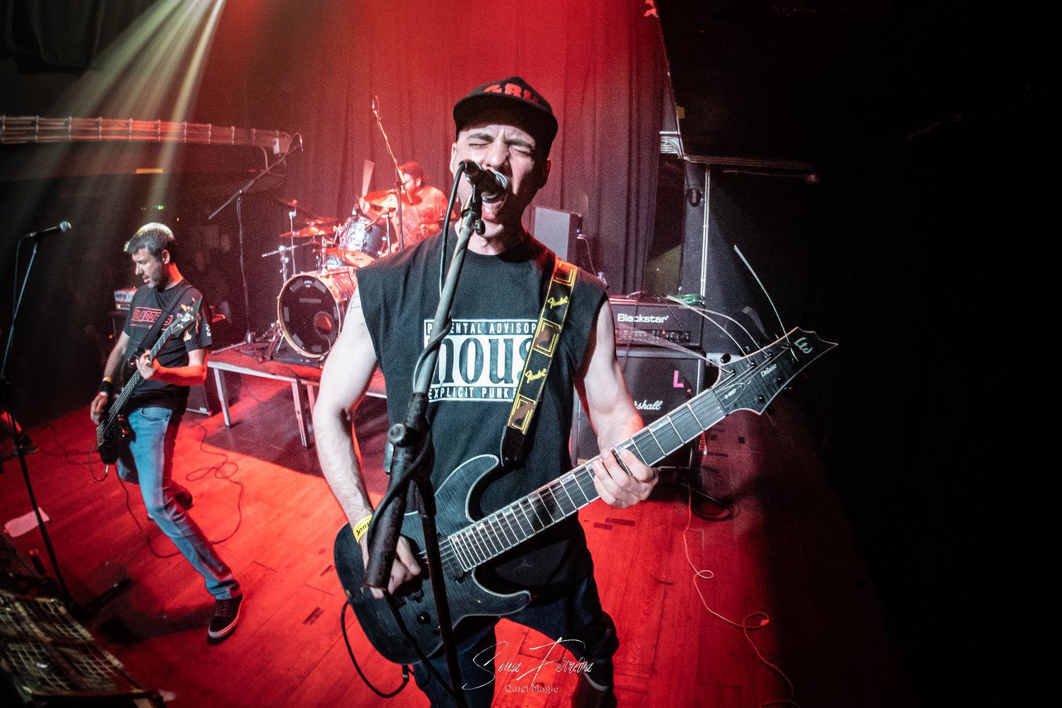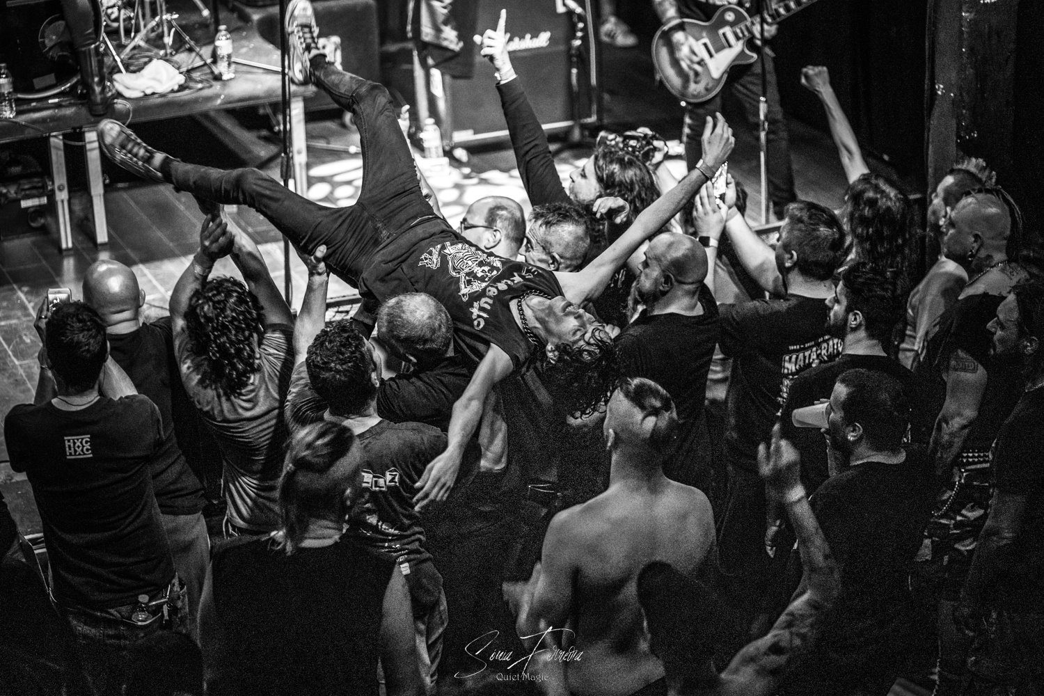 O entusiasmo, e a aura que pairava no ar a que nos referimos atrás, começava agora a transformar-se numa nuvem já mais densa e pronta a explodir. E foi isso que aconteceu com o primeiro tema dos GBH, «Time Bomb», retirado do já citado «City Baby Attacked By Rats», que foi tocado quase na íntegra. Apesar de ser o álbum mais acarinhado pelos fãs, toda a carreira da banda britânica está repleta de clássicos, sendo uma boa prova disso a forma entusiasta como «Momentum» e «Generals» foram recebidos. A comunicação limitou-se praticamente ao anúncio das músicas antes de serem tocadas e um ocasional “estão todos bem?” por parte de Colin Abrahall, que revelou uma invejável forma física — aliás como toda a banda — e não parou um momento. Quem também não parou por um momento que fosse foi o público em frente ao palco, com aquelas batalhas campais que são sempre impressionantes de ver e que colocam um sorriso no rosto de quem as a aprecia mais de longe. Para o final, ficaram reservados os dois temas-título dos já mencionados clássicos do street punk antes de uma espécie de encore (a banda não chegou a sair do palco mas houve uma pausa maior que o costume) para tocarem «Liquid Paradise (The Epic)» e uma versão da «Bomber», das lendas Motörhead, que colocaram um ponto final numa noite memorável, que causou impacto positivo não só nos fãs mais ferverosos mas também na própria banda que anteriormente já tinha agradecido à Hell Xis e às bandas que tocaram antes deles. A avaliar pelos sorrisos nos rostos, a gratidão maior era mesmo de todos os fãs.