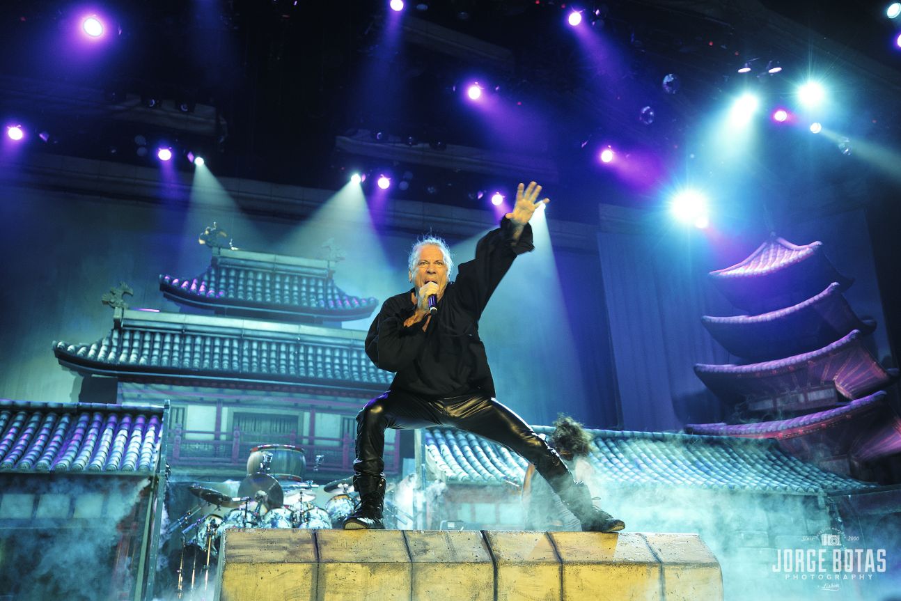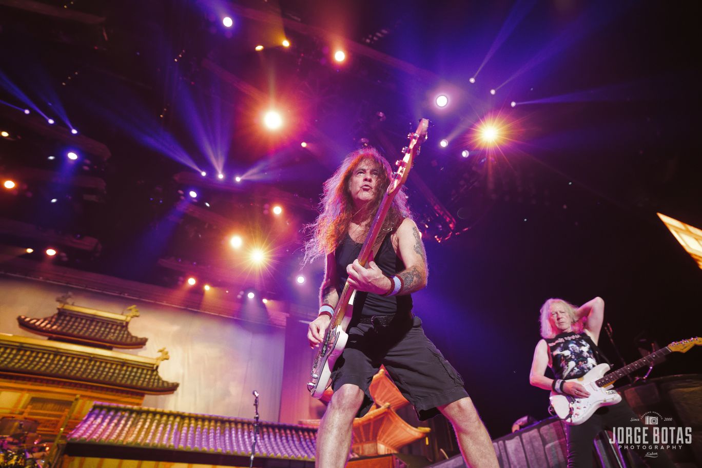 É bom voltar a referir a qualidade do som durante todo o concerto. Há muito tempo que não ouvíamos um actuação numa arena grande com um som tão perfeito. O clássico «Fear Of The Dark» colocou os quase 40 mil fãs presentes a cantarem as suas melodias de princípio ao fim, com Bruce a aproveitar para encaixar umas palavras em francês. Por falar no vocalista, é impressionante como consegue correr de um lado para outro do palco sem que a voz falhe ou que nunca lhe falte o fôlego. De referir também que continua a mudar muitas vezes de roupa ao longo da actuação para estar enquadrado com os temas. O homem é um espectáculo dentro do espectáculo – em «Hallowed Be Thy Name», passa boa parte do tempo dentro da jaula à espera que chegue a sua hora. «The Number Of The Beast» é uma constante explosão de pirotecnia, e em «Iron Maiden» temos a aparição do Eddie demoníaco em tamaho gigante no fundo do palco.