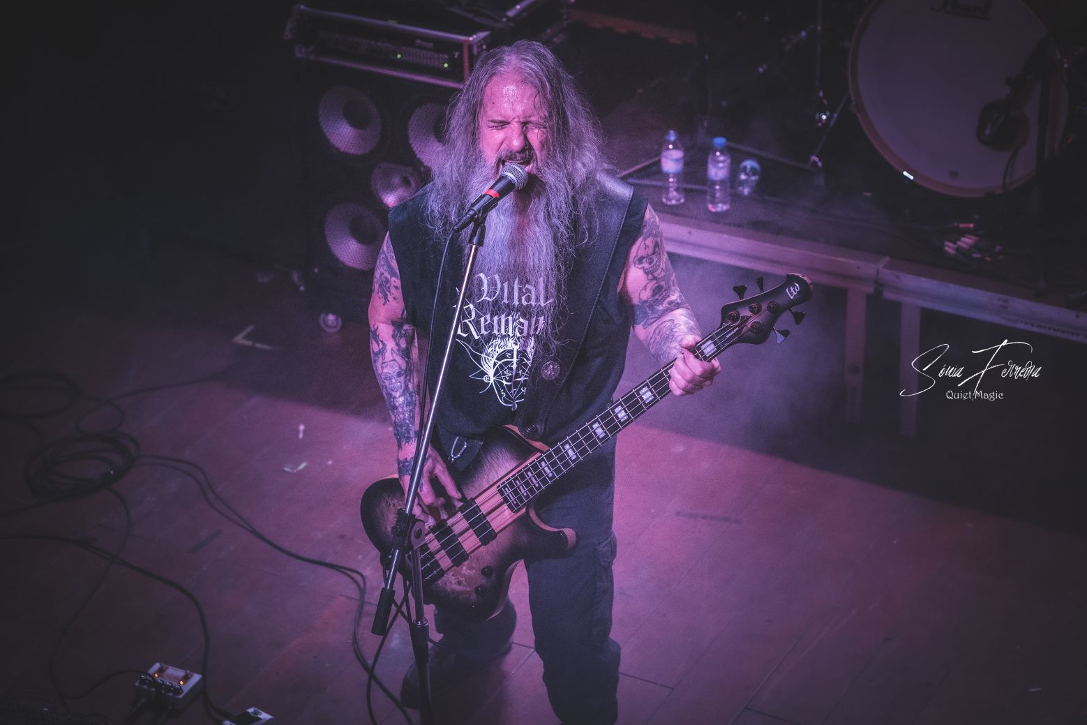 Sempre bem disposto, o baixista/vocalista foi dando voz – sempre com aquela pose carismática que deverá ser desconfortável de manter (terá de ser!) – a uma selecção de temas que tanto ia ao passado mais recente como encontrava refúgio nos trabalhos mais recentes, trazendo um pouco do melhor dos dois mundos para a assistência cuja única exigência que tinha era fazer headbang e air guitar. Destaque também para o guitarrista Alex Nejezchleba que ia cuspindo riffs e solos sempre com muito feeling e para o baterista Ruston Grosse que completa a formação com ritmo seguro e preciso. Claro que o final teria de vir com a «Pay To Die», o clássico do álbum de estreia que normalmente encerra as suas actuações. Um final em alta numa actuação sem momentos aborrecidos por parte de um dos nomes de culto do death metal.