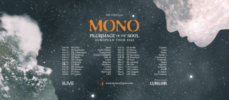 Os MONO anunciaram um novo álbum, a sair no próximo dia 17 de Setembro através da Pelagic Records – chama-se «Pilgrimage Of The Soul», e será já o 11.º longa-duração da banda nipónica nos seus 22 anos de existência. Desde há muito visto como um dos principais nomes no post-rock e na música experimental, o quarteto japonês não deixou que a pandemia lhes abrandasse o ritmo. «Pilgramage Of The Soul» foi gravado no Verão de 2020, e é descrito como uma fiel representação dos muitos pontos altos e baixos por que passaram até agora nesta longa jornada desde que se formaram, e também como o álbum mais dinâmico que fizeram até agora. Recorde-se que «Nowhere Now Here» tinha sido o último álbum lançado pelos Mono, em 2019. «Pilgrimage Of The Soul» promete novidades, como nova instrumentação elecrónica, tempos mais rápidos e influências de disco e techno. Para começar a digerir estas surpresas todas, nada melhor que um primeiro aperitivo, e felizmente «Riptide», o primeiro tema do álbum e também o seu primeiro single, acompanhou este anúncio e já está disponível para ouvir. Mergulhemos no mundo dos Mono mais uma vez! Está prevista uma tour no início de 2022 como suporte a este lançamento, e mais uma vez Porto e Lisboa irão receber esta ilustre visita. Na companhia de A. A. Williams, os Mono tocam no Hard Club e no LAV – Lisboa ao Vivo nos dias 21 e 22 de Fevereiro, respectivamente.