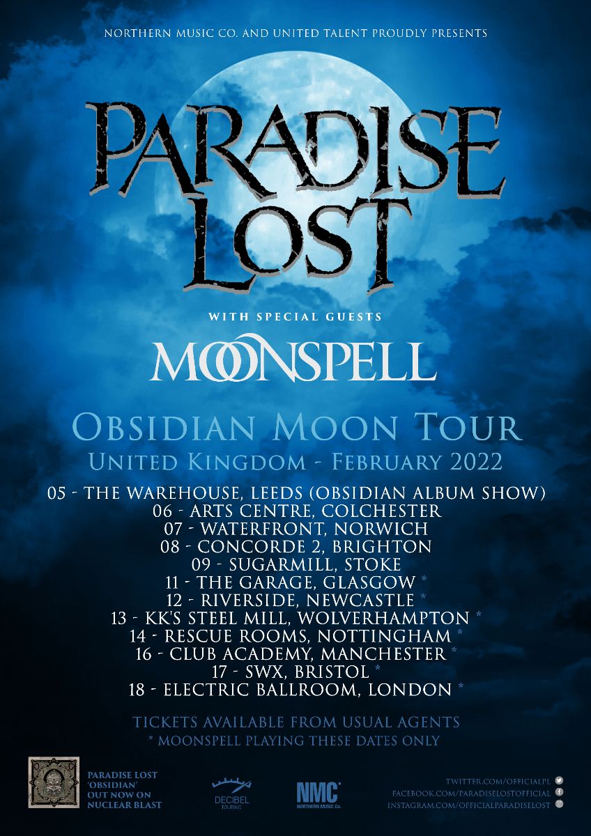 Hoje terça-feira, 13 de Abril, os MOONSPELL anunciaram um muito aguardado regresso à estrada, que se vai materializar com uma digressão britânica ao lado dos lendários PARADISE LOST em Fevereiro de 2022, o ano em que a banda nacional comemora três décadas de existência. “Estamos entusiasmados por finalmente termos notícias positivas para dar sobre a nossa actividade ao vivo e, em particular, sobre a nossa digressão de 30 anos/Hermitage“, pode ler-se num comunicado divulgado pelo grupo nacional nas suas redes sociais. Por seu lado, Nick Holmes, o vocalista dos PARADISE LOST, diz que não poderia haver “ninguém melhor” para se juntar à sua banda nestas datas pelo Reino Unido que os “velhos amigos de Portugal, Moonspell”.