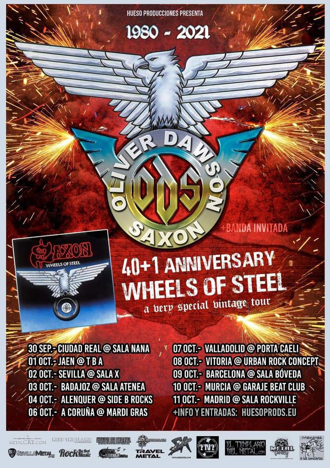 Os concertos podem estar semi-suspensos, mas o agendamento não e coisas novas vão acontecendo, outras sendo reagendadas, na esperança de 2021 ser um ano bem melhor que o presente no que à música ao vivo diz respeito. Hoje, nesse sentido, damos conta que o espectáculo dos OLIVER/DAWSON SAXON, que estava agendado para este mês, viu agora a sua data recolocada para 4 de Outubro de 2021, no Side B Rocks, em Alenquer. A digressão que traz o grupo britânico ao nosso país, insere-se na celebração do quadragésimo aniversário do álbum «Wheels Of Steel», dos icónicos SAXON.