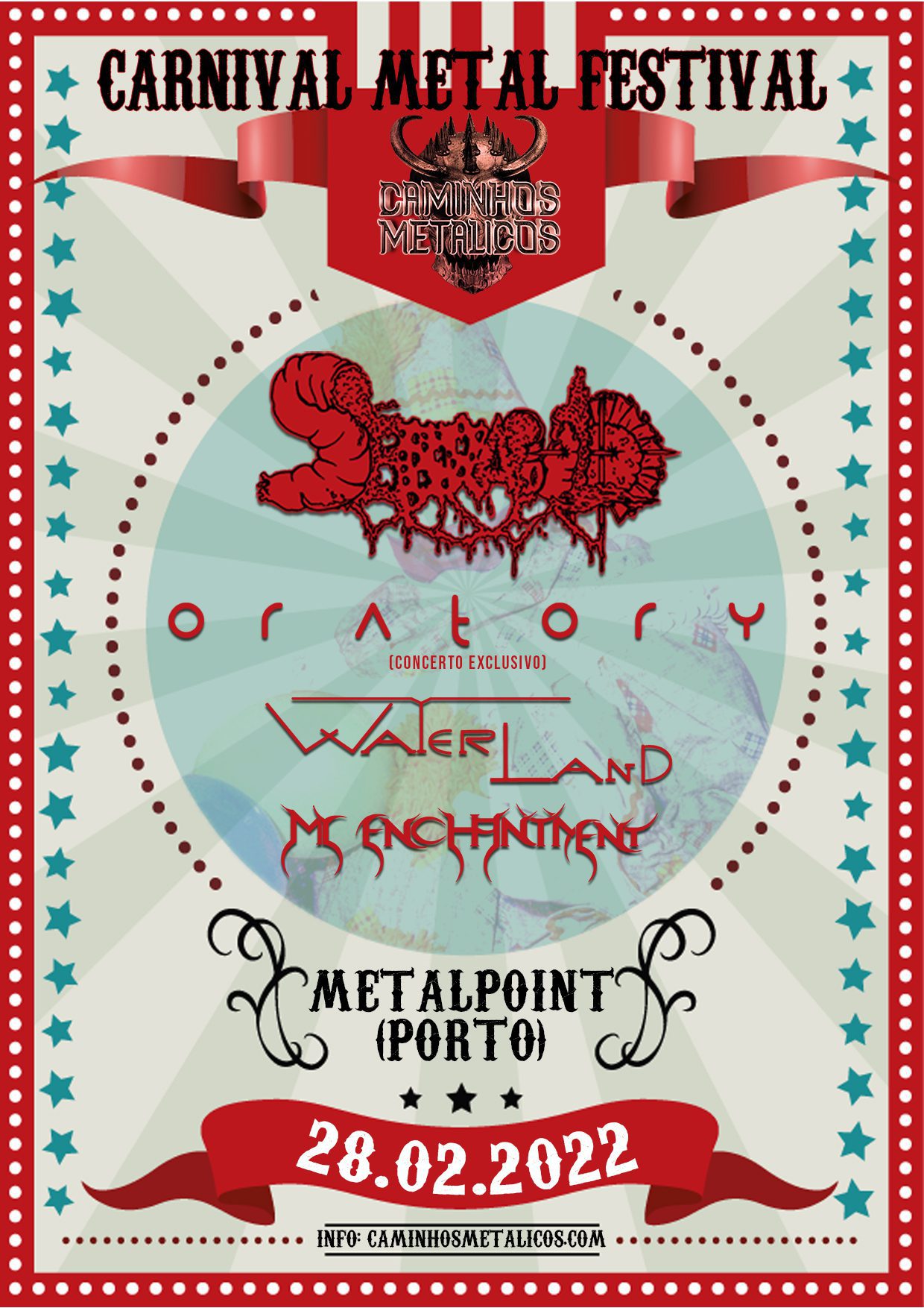O CARNIVAL METAL FEST terá lugar no Metalpoint, localizado no C.C. Stop, no Porto, a partir das 22:00 do dia 28 de Fevereiro. São quatro os nomes presentes neste cartaz 100% nacional: WATERLAND, MY ENCHANTMENT, SERRABULHO e ORATORY. Claramente que o destaque vai para o regresso dos barcelenses, naquilo que é o final de um longo hiato. A ideia deste retorno “surgiu de um convite do Carlos Guimarães para a possibilidade de participarmos no Carnival Metal Fest”, revelou à LOUD! o guitarrista Miguel Gomes, ue acumula funções nos WATERLAND. “Fizemos uns telefonemas uns para os outros e decidimos avançar para este concerto de uma forma descontraída e fizemos alguns ensaios, sentindo que podíamos voltar a tocar novamente”. Muitos podem não se recordar disto, mas os ORATORY foram das primeiras bandas nacionais a ganhar internacionalização, com edição dos seus álbuns de estúdio através da Limb Music. É por isso que o grupo vai “aproveitar para celebrar os vinte anos da gravação” de «Beyond Earth», disco lançado em 2002, e último longa duração do colectivo. Na noite de segunda-feira, vai subir ao palco uma formação à volta da que registou esse álbum: Ana Lara na voz, António Silva nos teclados, Miguel Gomes na guitarra, Rui Santos no baixo e, na bateria, Tiago Moreira, também dos WATERLAND e o único músico que não integrou previamente a formação do grupo.