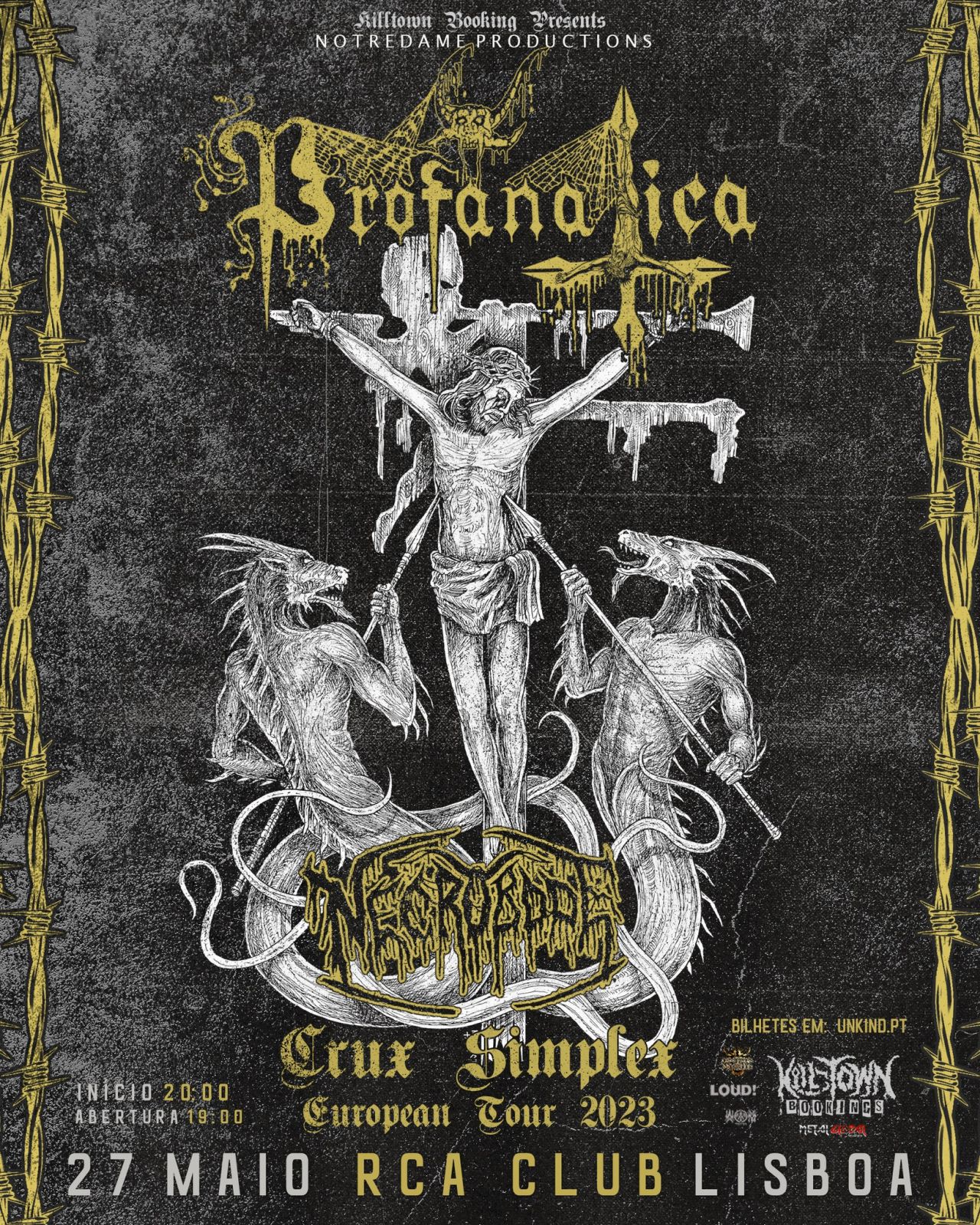 Os ícones do black/death metal norte-americano PROFANATICA vão regressar à Europa para uma nova digressão, que vai percorrer o velho continente de lés a lés este ano e tem paragem marcada em Portugal, com os nova-iorquinos a subirem ao palco do SWR Barroselas Metalfest no dia 28 de Abril e, cerca de um mês depois, a regressarem ao RCA Club, em Lisboa, no dia 27 de Maio. Ganhando estatuto como uma das primeiras propostas de black metal surgidas do outro lado do Atlântico, os PROFANATICA deram os primeiros passos em 1990 e andam a debitar blasfémias primitivas há mais três décadas. Neste regresso a solo luso, o colectivo liderado pelo influente Paul Ladney — que acumula funções nos também demolidores HAVOHEJ e cujo currículo inclui passagens por bandas tão veneradas como os INCANTATION, REVENANT e ABOMINATION — vai trazer na bagagem um novo álbum, intitulado «Crux Simplex», que será editado em breve pela Season Of Mist. A acompanhá-los em toda esta digressão vão estar os portugueses​​​ ​NECROBODE. Os ingressos para o espectáculo em Lisboa estão disponíveis aqui.
