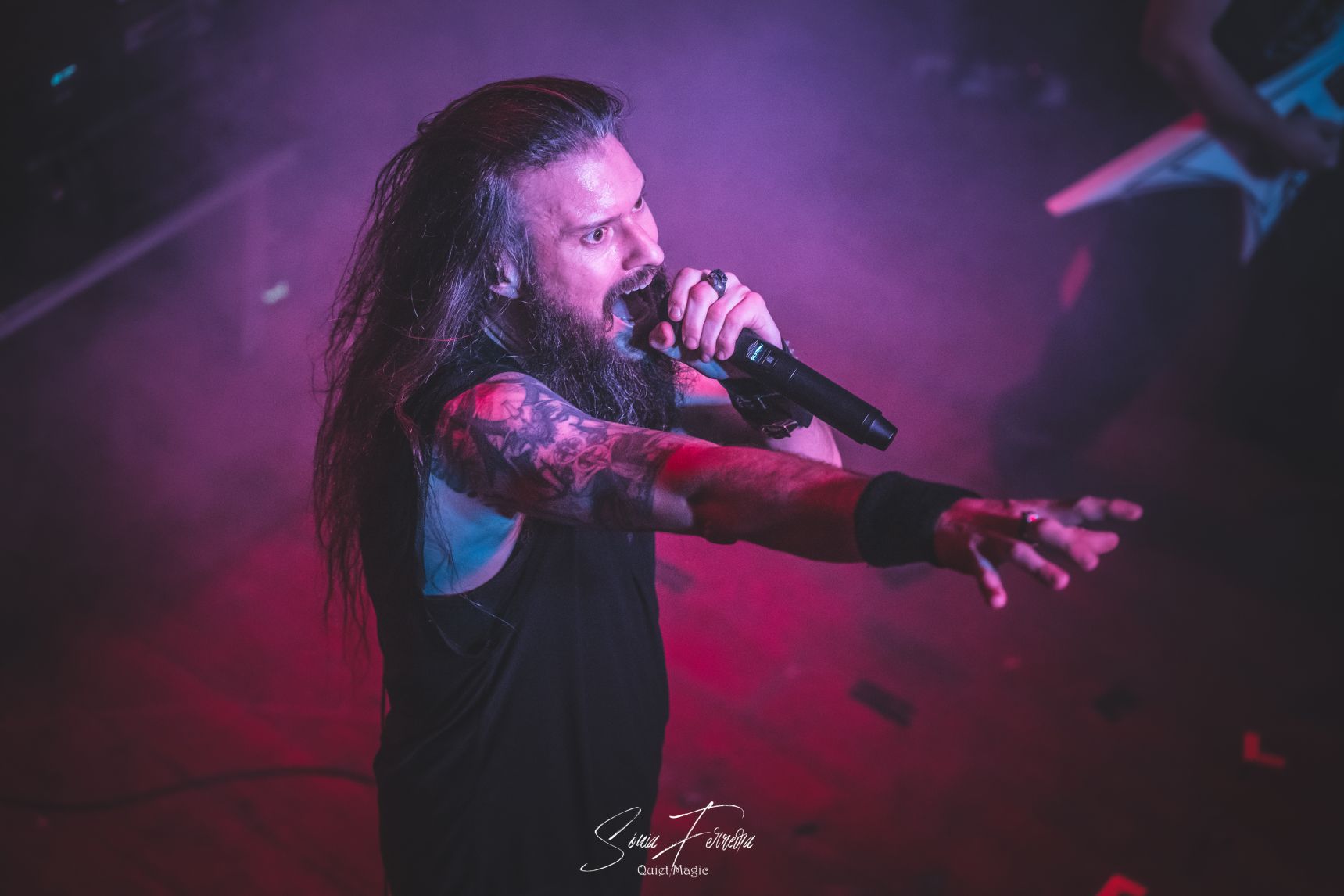 Com uma casa ainda a encher, chegou a vez dos DARK EMBRACE, banda já habitual nos palcos nacionais. A primeira coisa visível foi de que os galegos estavam algo desajustados neste cartaz, ainda que o seu death melódico tenha muitos pontos de encontro com as sonoridades tradicionais. Apresentaram-se sem baixista, e com o recurso a pistas pré-gravadas, deambularam pelos seus dois álbuns gravados, chegando até a tocar um tema novo, que será incluído no próximo trabalho de estúdio. O melhor viria mesmo com as rendições dos temas já habituais nas suas actuações, «Dark Embrace» e «Metalhead ‘Till I Die», com esta última a colocar um ponto final na actuação. Fica a expectativa de os voltar a ver num contexto mais apropriado e com um novo trabalho nas mãos.