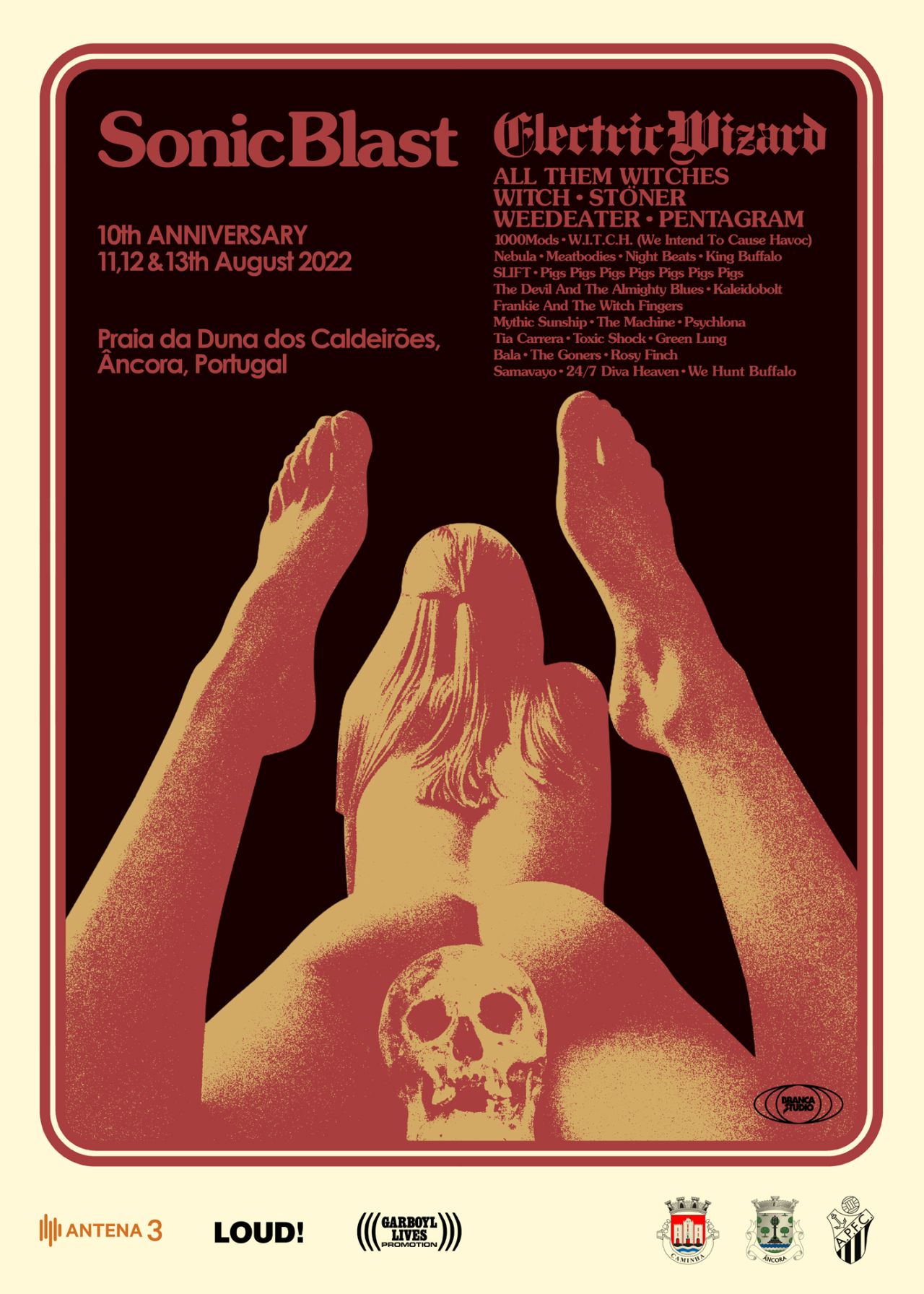 É uma lista que continua a crescer, para compor os três dias de um festival que, em 2022, se realiza na Praia da Duna do Caldeirão, Âncora, concelho de Caminha, distrito de Viana do Castelo. O evento, que tem sido muito acarinhado pelo seu público, está agendado para os disas 11, 12 e 13 de Agosto do próximo ano, naquela que será a sua 10.ª edição. Num cartaz que será encimado pelos britânicos ELECTRIC WIZARD, eram já 27 os nomes que o compunham até hoje. Agora, há mais nomes e são de peso, o supergrupo Stöner e ainda os também norte-americanos Witch. Ricardo Rios, organizador e responsável pela curadoria, afirma que o SONICBLAST tem “o grande orgulho de anunciar mais dois pesos pesados para o alinhamento de 2022”. O fundador do festival, destaca em particular os Stöner, “fundados pelos padrinhos do género, Brant Bjork e Nick Oliveri, ambos fundadores de Kyuss e com passagem por Queens of the Stone Age, Mondo Generator, Ché, Fu Manchu ou Bloodcot, cujo desejo de regressar às suas raízes do rock n roll os levou a formar este novo projecto”. O organizador remata dizendo que “o que é bom, permanece bom!”.