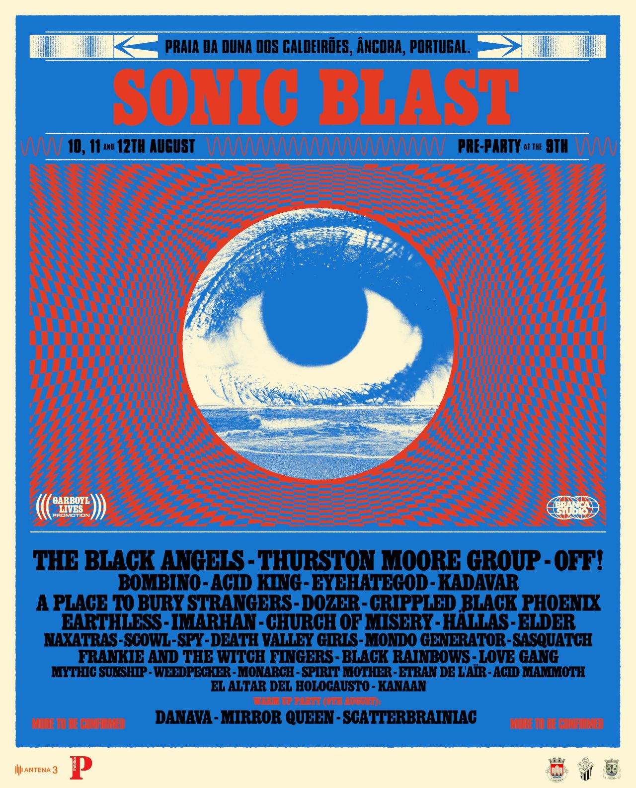 Depois do sucesso que foi a passada edição do evento, a primeira a ter lugar no novo recinto na Praia da Duna dos Caldeirões, em Âncora, a 11.ª edição do SONICBLAST continua a tomar forma a bom ritmo. Agora, o cartaz acaba de ficar mais preenchido com dezasseis novas confirmações; a saber: THE BLACK ANGELS, THURSTON MOORE GROUP, BOMBINO, DOZER, CRIPPLED BLACK PHOENIX, IMARHAN, HÄLLAS, SCOWL, SPY, SASQUATCH, LOVE GANG, ETRAN DE L’AÏR, MYTHIC SUNSHIP. DANAVA, MIRRON QUEEN e SCATTERBRAINIAC. Estas novas confirmações juntam-se ao primeiro lote de nomes anunciados previamente: OFF!, Acid King, EYEHATEGOD, Kadavar, Earthless, A Place To Bury Strangers, Church of Misery, Elder, Naxatras, Death Valley Girls, Mondo Generator, Frankie And The Witch Fingers, Black Rainbows, Weedpecker, Monarch, Spirit Mother, Acid Mammoth, El Altar Del Holocausto e Kannan.