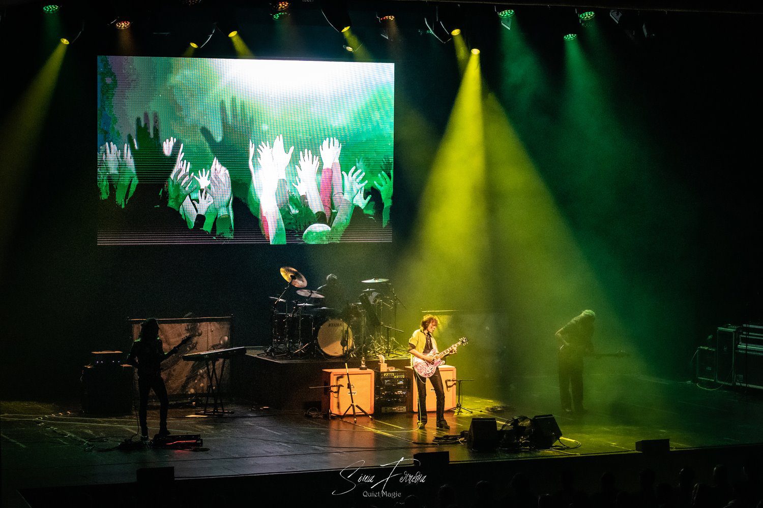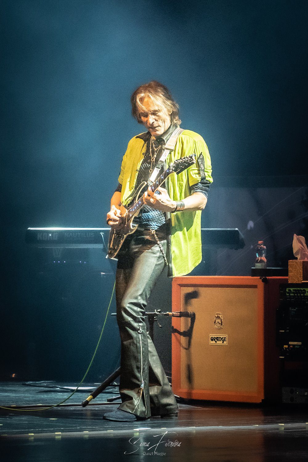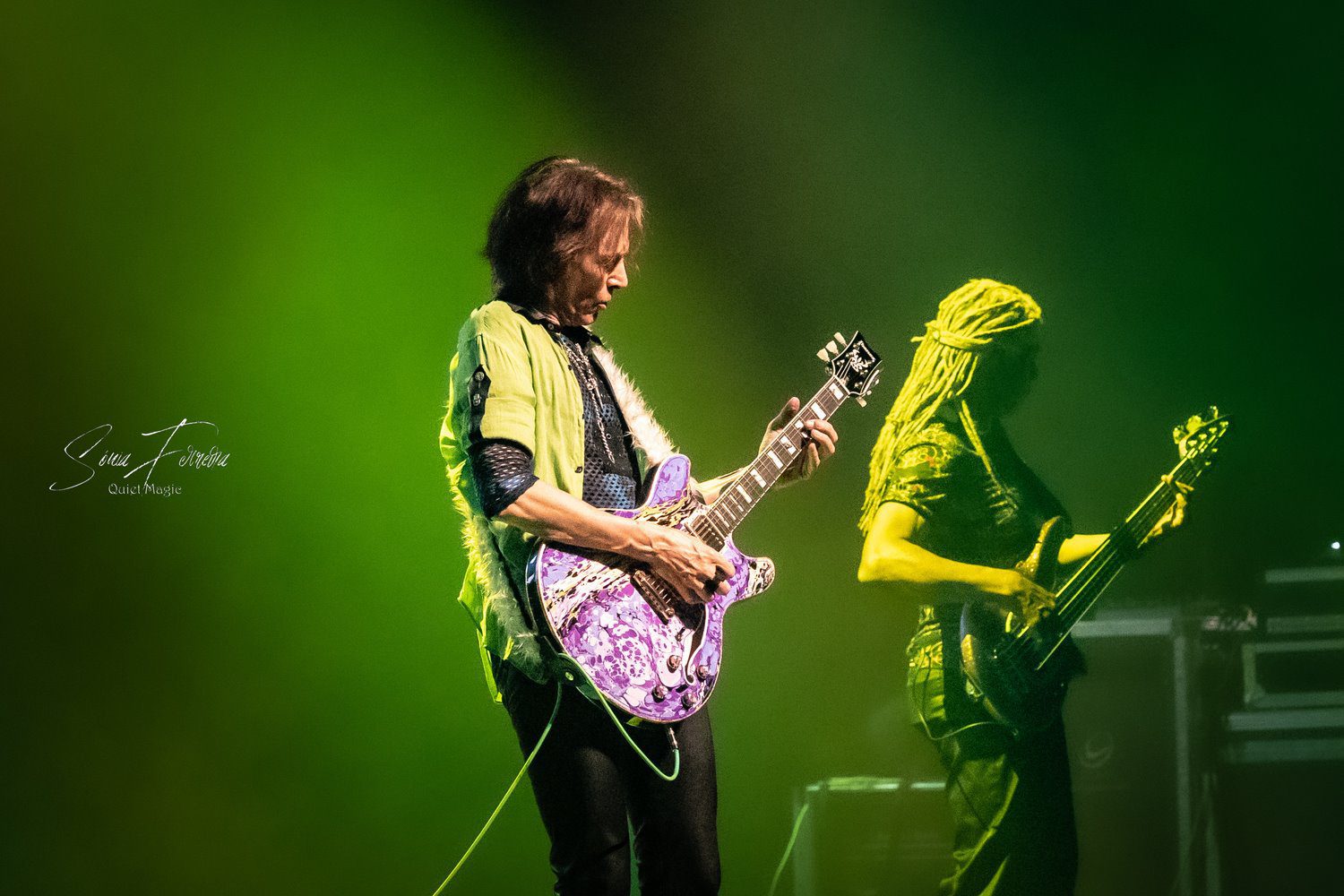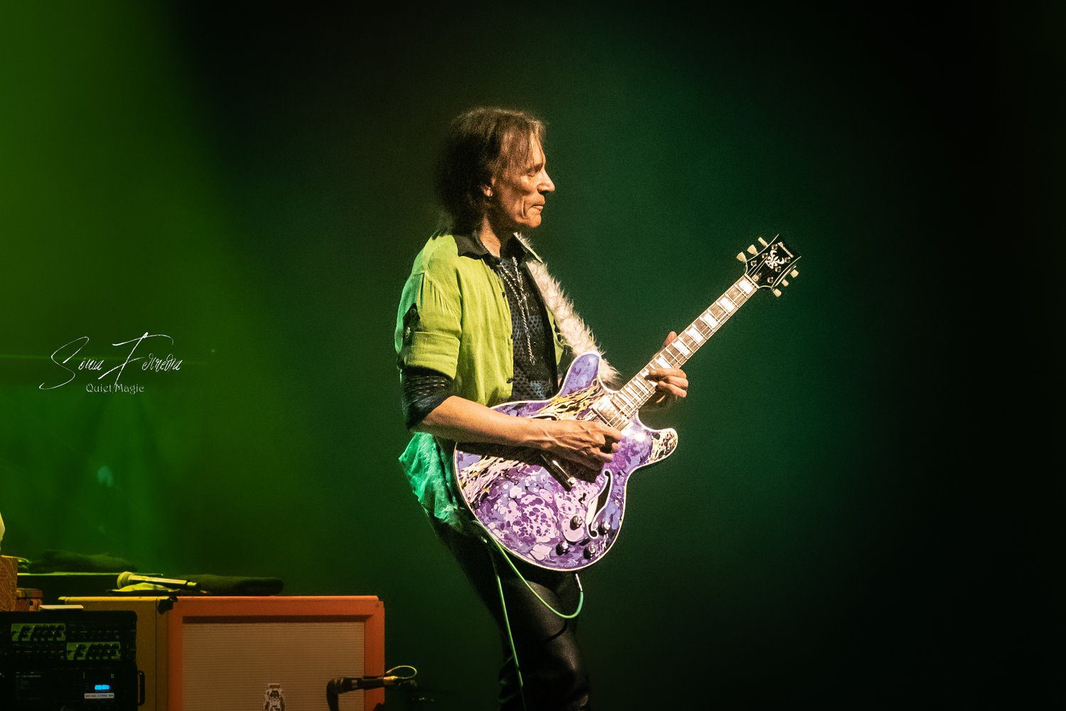 Para terminar, tivemos ainda um regresso ao álbum «Fire Garden» com uma secção de «Fire Garden Suite», durante a qual o músico passeou pela assistência e colocou a sua guitarra à disposição dos fãs para que pudessem modelar o som através da alavanca, chegando até a pedir a uma sortuda para pegar na guitarra enquanto continuava a tocar por atrás, abraçado a ela. Verdade seja dita, foi um daqueles finais que escapam às palavras e que são representativos da forma como, mais que debitar notas, mais que ter uma grande capacidade técnica, STEVE VAI é um mestre da arte de conseguir emocionar o seu público. A sua personalidade, e a gratidão que sente, são notórias, não deixando de referir, quando toda a banda já tinha saído de palco e o público ainda aplaudia de pé, como sentia todo o apoio e carinho que tem recebido ao longo dos anos e que lhe tem permitido realizar o seu sonho. Antes do início do concerto tinha sido pedido ao público que não o fotografasse ou filmasse, mas quase se percebe a opção dos muitos que foram infringindo o pedido na tentativa de registarem o momento.