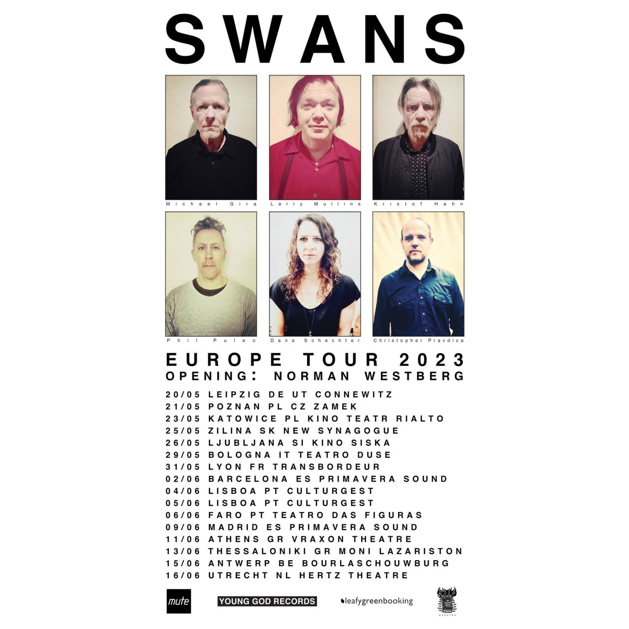 Os lendários SWANS anunciaram uma nova digressão europeia para este ano e, à data já anunciada para a Culturgest, em Lisboa, no dia 4 de Junho, a banda liderada por Michael Gira juntou agora um segundo concerto na mesma sala, a 5 de Junho, bem como uma última actuação no Teatro das Figuras, em Faro, a 6 de Junho. O novo «The Beggar», com data de edição apontada para o mês em que acontecem estes espectáculos, serve de mote à nova rota pelo Velho Continente mas, para além de celebrar o novo álbum, assinala também a comemoração de 40 anos de um percurso de excelência e absolutamente incontornável. Mais do que uma discografia, são quatro décadas de uma vida pulsante que contém múltiplas existências, alguns enterros e muitas revoluções sonoras. Michael Gira foi sempre conduzindo os SWANS tal qual uma costela extraída de si próprio, carnosa e intuitiva, assumindo o seu fim várias vezes enquanto provocava a ressurreição noutras tantas, como se fosse impossível deixar de ser Deus e estancar uma ideia que nasceu para ser imortal. Ausentes de Portugal desde 2017, a pandemia impossibilitou-nos de ver em palco a grandiosidade do anterior «Leaving Meaning», de 2019, sendo que esta será uma boa oportunidade para nos colocarmos novamente de frente para este colosso sónico, aceitando de peito aberto tudo o que nos querem oferecer. Os bilhetes para a segunda data em Lisboa já estão à venda pelo custo único de 28 euros. Em Faro, os ingressos também já estão à venda, com os preços a variarem entre os 30 euros (1ª plateia) e os 27,5 euros (2ª plateia). As primeiras partes destes concertos serão asseguradas por NORMAN WESTBERG.