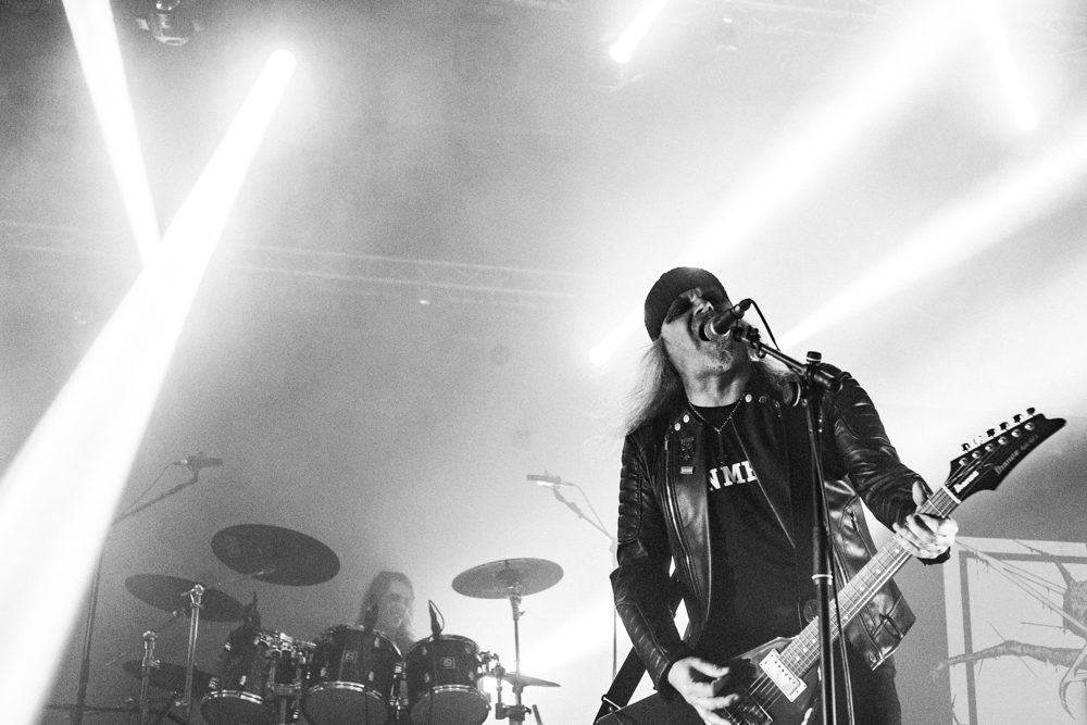 Ali meio perdido para o meio do cartaz, e igualmente posicionado a meio do último dia, estava um nome que não terá suscitado grandes reacções da maior parte do público – uns tais de Blodskam. Mesmo quem acompanha mais regularmente o underground do black metal poderá não ter totalmente ideia do trajecto destes suecos. Certamente terá passado ao lado de muitos que estávamos perante uma ocasião rara e bastante peculiar – ainda para mais de uma banda de um país com tradições firmes num dos géneros maiores da música extrema, fundada há mais de duas décadas. É que este concerto em Barroselas era… o seu primeiro! É verdade, tivemos a honra de testemunhar a primeira, e para já única, aparição em palco de uma entidade nebulosa, formada pelos irmãos Aghora e Dödfödd em 1998, mas que só na última década começou a dar sinais de verdadeira actividade. E que actividade – «Là-Bas» e «Ave Eva», de 2019 e 2022 respectivamente, são dois petardos de black metal old school, denso, fortíssimo, abrasivo e recheado de canções de elevado potencial, e foi precisamente essa a vibe que a banda nórdica transmitiu numa actuação potentíssima, sempre em crescendo, que começou com umas dúzias de curiosos em frente ao palco do Arena Stage e terminou com uma horda de devotos aos berros. O primeiro tema do tal primeiro álbum, intitulado «Bödel», teve um impacto particularmente visceral, com Dödfödd a arranhar o refrão marcante (“you are not my father / satan is my father!“) com uma convicção arrepiante. A cuspidela de sangue no final da actuação, para além de ter apanhado de surpresa alguns dos presentes nas filas da frente, foi como que a cruz invertida final espetada no coração de Jesus. Um daqueles concertos que quem decidiu ir ver vai dar muito valor à sua escolha nos próximos anos. [J.C.S.]