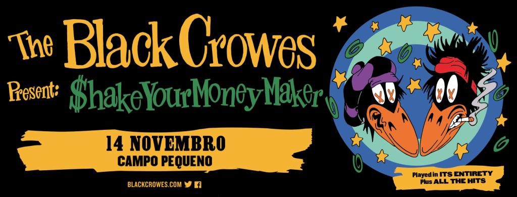 Os THE BLACK CROWES têm um concerto marcado para Portugal. Depois de se terem estreado por cá em 1995, a fazer suporte aos ROLLING STONES, e de, quatro anos depois, terem partilhado o cartaz com os METALLLICA, AEROSMITH, MONSTER MAGNET e MINISTRY, entre muitos outros, no festival T99, que se realizou no Estádio Nacional, desta vez a banda dos irmãos Robinson fará um concerto em nome próprio, que acontecerá no dia 14 de Novembro, no Campo Pequeno, em Lisboa. O espectáculo está inserido na digressão de celebração do 30º aniversário da platinada estreia, «Shake Your Money Maker», que testemunhará o regresso aos palcos do grupo que estava separado desde Dezembro de 2013. A digressão arranca no dia 10 de Outubro, em Dublin, e continua depois com vários concertos espalhados por toda a europa. Os bilhetes estão à venda a partir da próxima sexta-feira, 7 de Fevereiro, às 10:00.