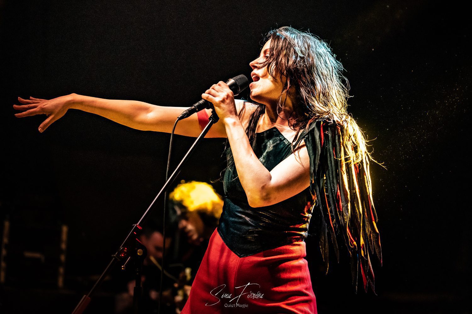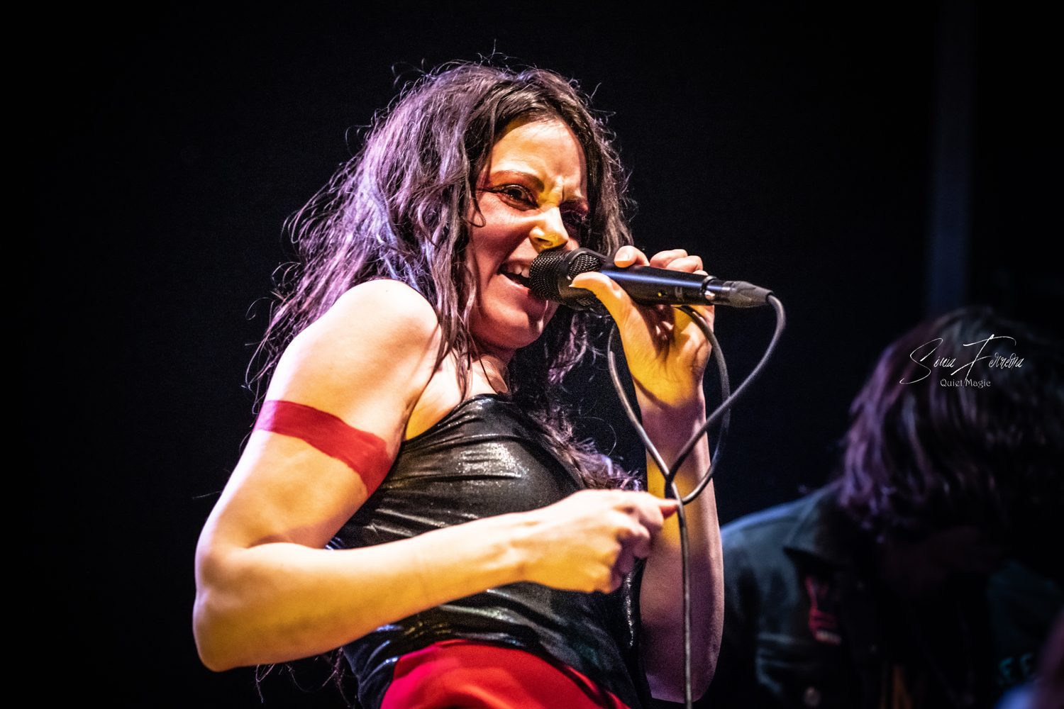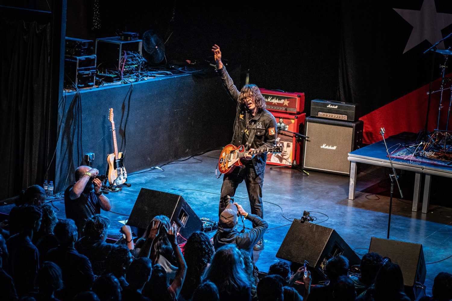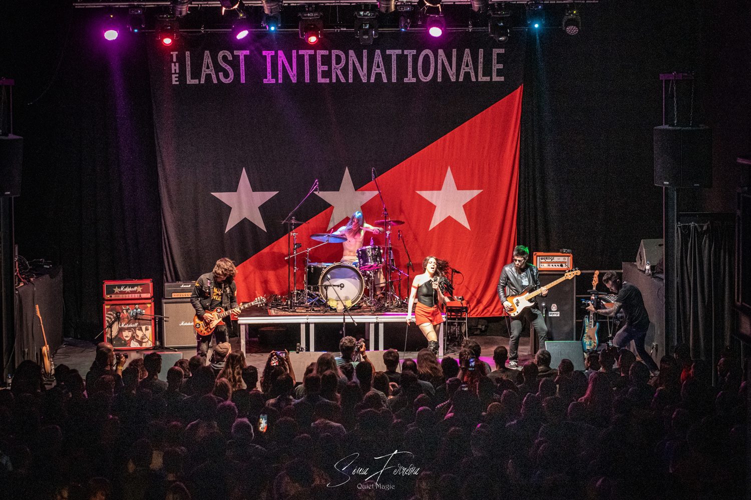 Do novo álbum ainda se ouviria o tema-título, «Running For A Dream»; outro momento arrepiante que, na recta final, antecedeu uma verdadeira sucessão de clássicos. «Wanted Man», com Delila a acumular o baixo e a voz enquanto o baixista foi para os teclados, revelou-se mais um momento espantoso de comunhão, que acabou com o público a continuar a cantar muito depois da banda ter acabado e a vocalista a dizer em tom divertido que a música não tinha fim. «Hard Times» era outro tema que não podia faltar, com Delila a revelar que, quando cresceu no Bronx, era muito tímida, frisando mesmo que ainda o é actualmente. Depois de alguém do público contestar a afirmação, respondeu que em palco tudo é diferente, e que se sente mais à-vontade. Edgey Pires acrescentou que isso também acontece porque estava em casa e aquela era a sua família. Delila acabou a apresentação do tema dizendo que podemos mudar o que somos, podemos evoluir, mas temos de manter a nossa essência. Mensagem inspiradora que servu de mote a uma interpretação selvagem de um grande tema de rock’n’roll, durante o qual Edgey partiu as cordas da guitarra de forma selvagem. Teria sido o ponto mais alto, não fosse Delila ter ido para o meio do público em «1968», pedindo a todos para se baixarem, para logo saltarem efusivamente ao som das palavras “freedom right now“. Para o encore estava reservada a «Hit ‘Em With Your Blues», tema onde a vocalista pediu para o público subir para o palco. Algo que inicialmente até parecia ser feito de forma tímida, mas pouco tempo depois, já estava o estrado cheio de fãs aos saltos e nem sequer faltaram alguns duetos improvisados (e inspirados) com uma fã. Resultado, nesta ocasião os THE LAST INTERNATIONALE mostraram mais uma vez como o espírito do rock’n’roll é tão imortal quanto o espírito humano e como o desejo pela liberdade, justiça e igualdade continuam a ter uma força desmedida.