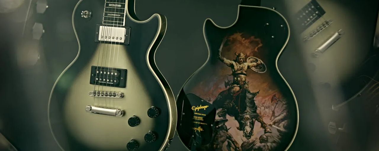 O instrumento surge com alguns retoques em relação aos modelos anteriores. O núcleo permanece. É uma Les Paul acabada em Antique Silverburst, no entanto, com a saída da Custom Shop, foram feitas algumas alterações que se reflectem no preço mais baixo. Ainda assim, uma guitarra de três mil paus continua a não ser propriamente um bombom orçamental. Foi já em Dezembro de 2022 que chegou o primeiro modelo Epiphone e a certeza de que seria sucedido por outros sete modelos, totalizando oito guitarras, cada uma limitada a 800 réplicas. Significa isto que os preços (em torno dos mil e duzentos dólares) não são tão budget friendly como se poderia ter antecipado mas, pelo menos, os componentes mantém-se num padrão de qualidade bastante aceitável, desde logo por ostentar o selo Custom e não Standard. Depois, numa colecção que é bastante singular, o guitarrista dos TOOL faz curadoria aos trabalhos de artistas como Mark Ryden, Frank Frazetta, Julie Heffernan, Korin Faught e Ernst Fuchs. “Quando penso em arte, dou a mesma importância ao aspecto visual e auditivo, cada um a impulsionar o outro“, afirma Jones sobre as pinturas que elegeu para juntar ao acabamento Antique Silverburst que homenageia a sua Gibson Les Paul Custom de 1979 original. Todas as guitarras vão ainda ostentar o design especial de Korin Faught na face posterior da cabeça. Sobre cada um dos modelos disponíveis podes descobrir mais na ROMA INVERSA.