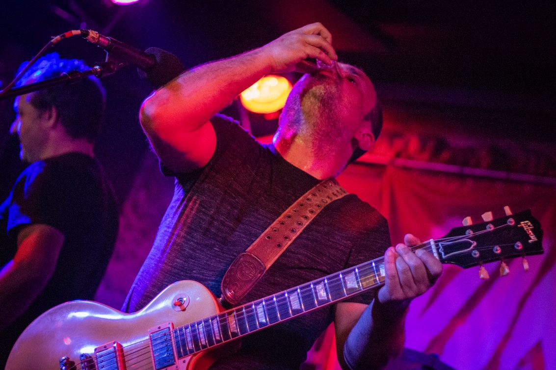 A carruagem que transportava o quarteto de bandidos conhecidos como Viralata não se atrasou, e logo à segunda malha começaram por testar as gargantas dos presentes com «Estrelas Decadentes». Sem muito tempo para respirar, os hits foram sendo executados com precisão e mesmo sem o vocalista Ulisses saber bem se esta ou aquela música são do segundo ou terceiro disco, o público estava atento o suficiente para o corrigir. Pode-se dizer que existem uns Viralata antes e depois do medronho, esse elixir dos deuses algarvio. Uma das maiores exportações da região, que demorou pouco tempo até chegar ao palco, cortesia do Toni dos No Time To Waste, que distribuiu um shot a cada membro. Assim que bateu… digamos que os sorrisos foram mais presentes, o Filipe ganhou asas nos pés e o baixo passou a ter metade do peso e, o Ulisses conseguiu cantar uma quadra inteira de uma das malhas num dialecto que não conseguimos descortinar. Como já tinham demonstrado n’«O Último Pôr Do Sol», os presentes trouxeram as “goelas afinadas” e isso ficou provado ao cantarem “F*da-se a mota é linda” em «Famel». E claro que não poderíamos ir para casa sem matar saudades da «Ivone». As noites de punk rock estão de volta a uma sala que poderia muito bem ser descrita como o CBGB do Algarve (mas com WCs MUITO melhores!).